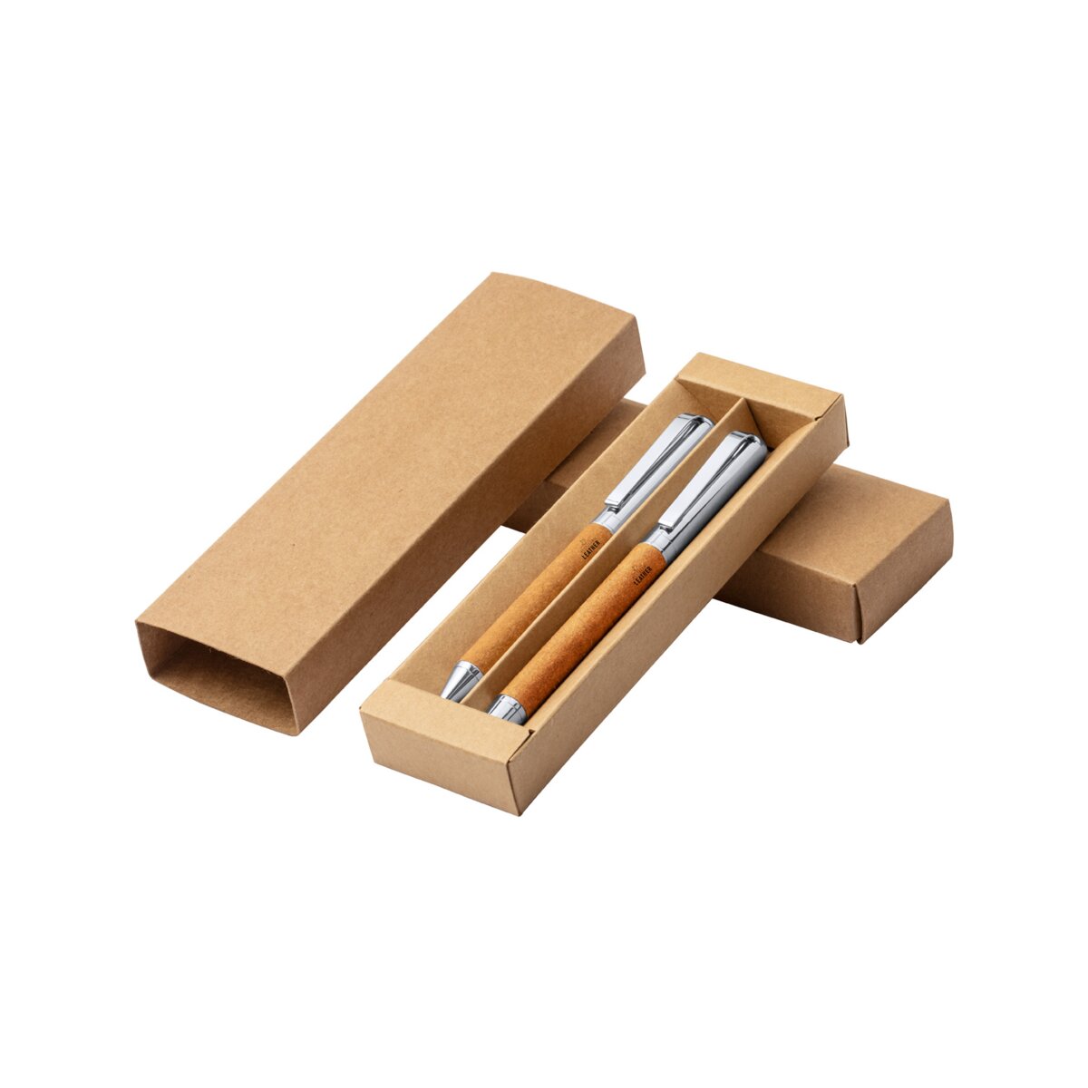 Produkt dostarczany jest w praktycznym, papierowym pudełku, co znacznie ułatwia przechowywanie i transport. Dodatkowo, dzięki zastosowaniu wysokiej jakości materiałów, długopis i pióro z metalu pokryte ekologiczną skórą są wyjątkowo lekkie, dzięki czemu idealnie nadają się do noszenia w torebce lub plecaku.