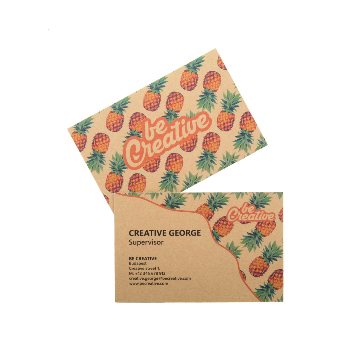 Visicard Eco personalizwane wizytówki to doskonały, ekologiczny nośnik wizerunku, dzięki któremu pierwsze wrażenie pozostanie w pamięci Twoich klientów na długo 🙂. Produkt wyróżnia się prestiżowym wykonaniem na papierze kraft o gramaturze 300 g/m², gwarantującym przyjemną w dotyku, matową powierzchnię. Standaryzowane wymiary 85×55 mm sprawiają, że wizytówka bez trudu mieści się w portfelu, etui czy klasycznym wizytowniku.