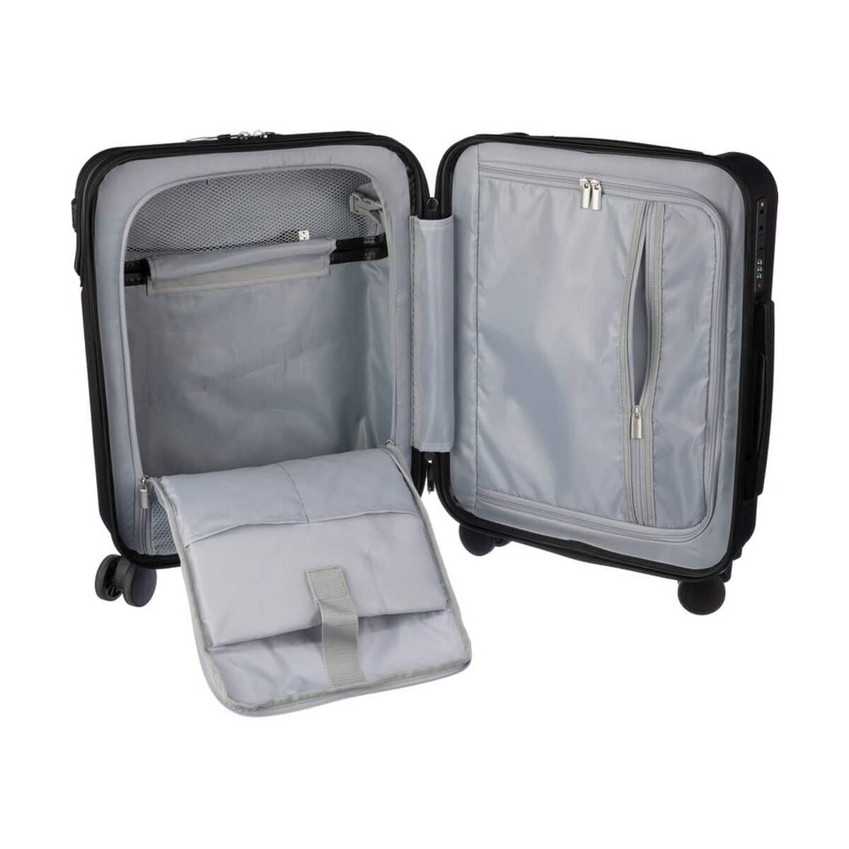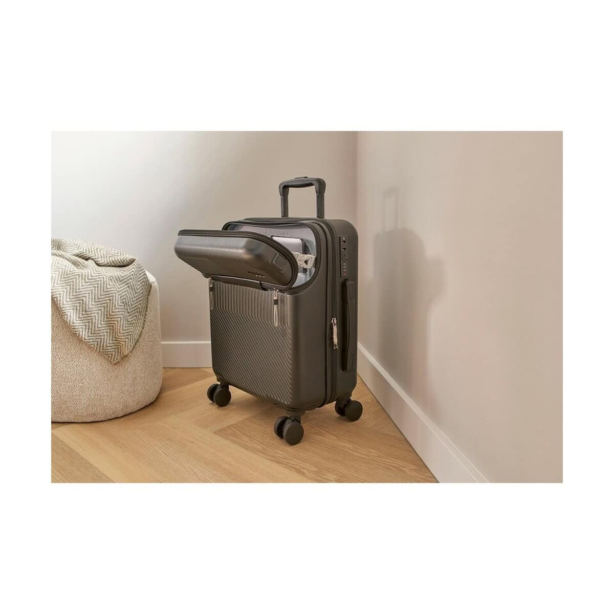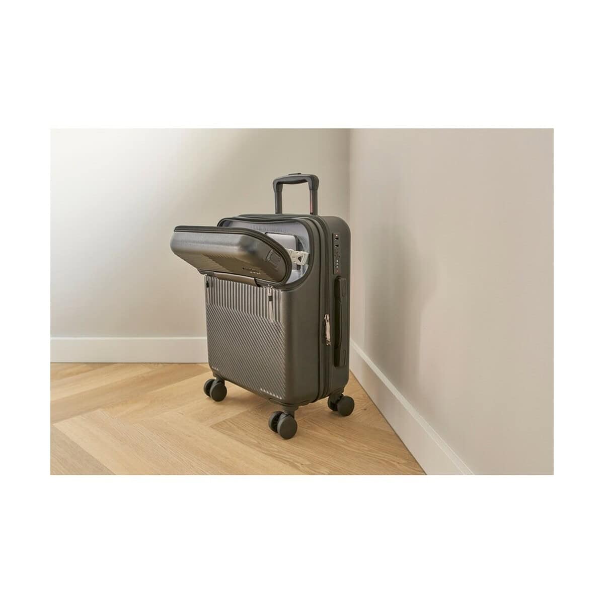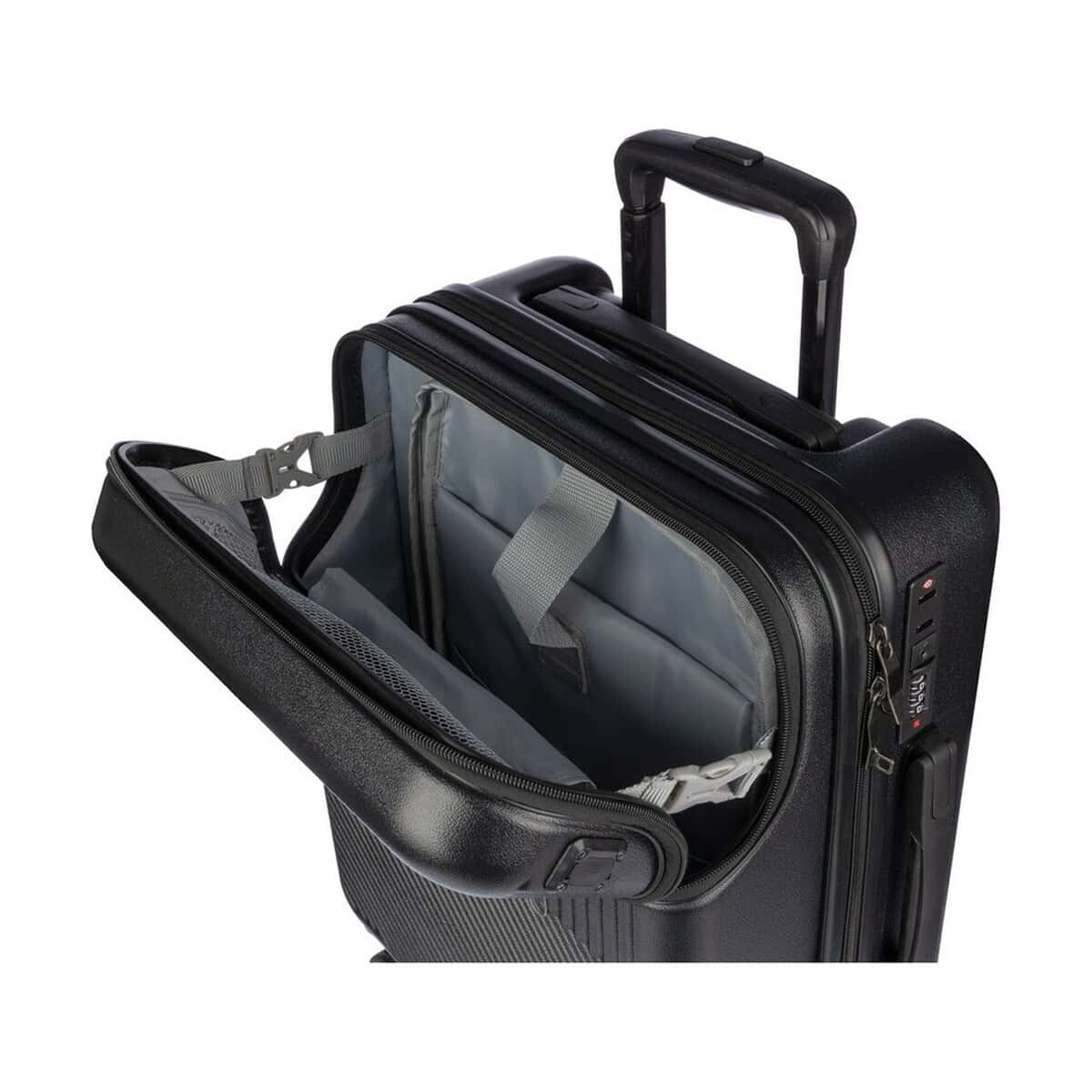 Frontowa kieszeń na laptopa zapinana na zamek błyskawiczny chroni sprzęt elektroniczny przed wstrząsami, a wbudowany zamek numeryczny zabezpiecza zawartość przed niepożądanym dostępem. Korpus z wytrzymałego ABS, w połączeniu z elementami z poliestru, metalu i papieru, gwarantuje wysoką odporność na zarysowania i pęknięcia. Dostępne wersje kolorystyczne – szara i czarna – doskonale podkreślą charakter nowoczesnego przedsiębiorstwa.