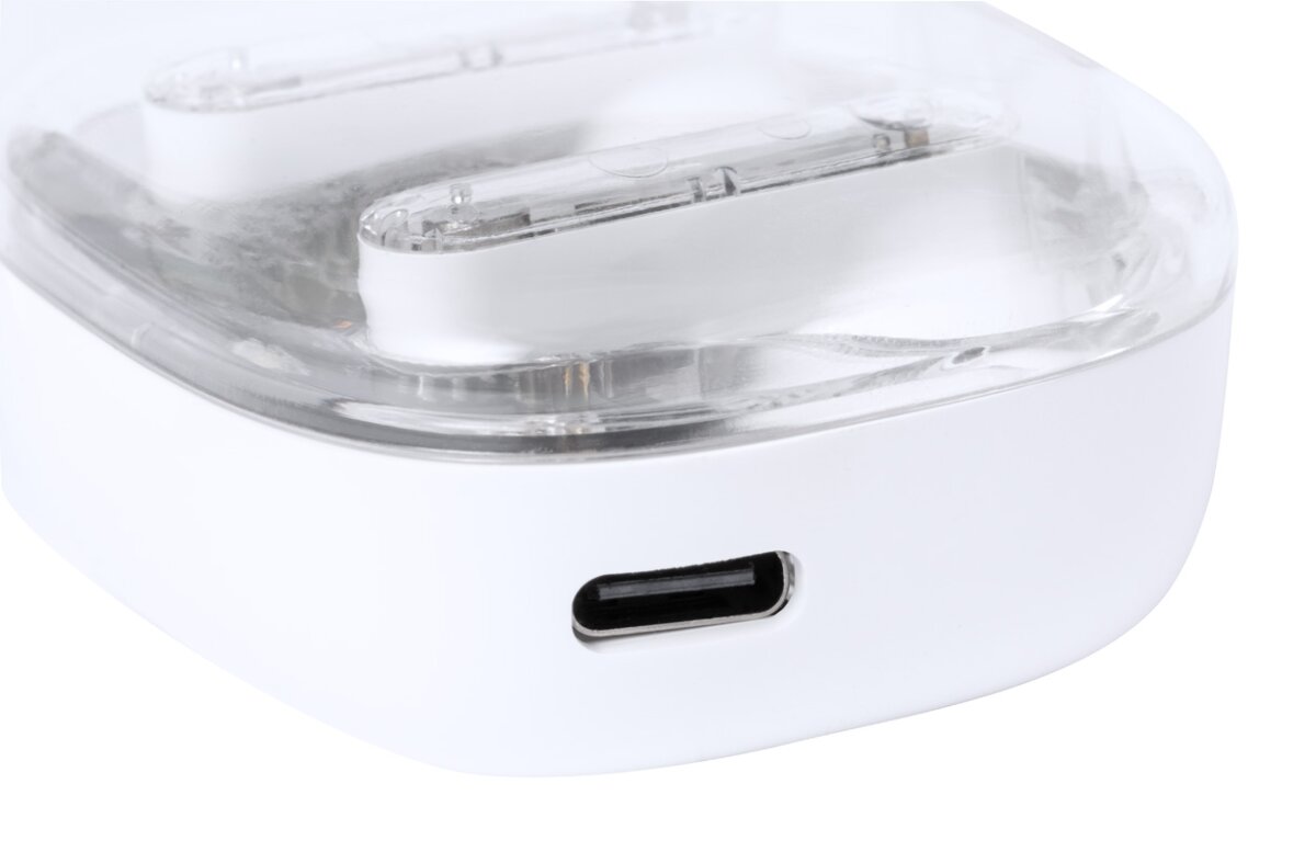 W zestawie znajduje się półprzezroczyste plastikowe etui ładujące oraz kabel USB, co ułatwia utrzymanie słuchawek w pełni naładowanych w każdej sytuacji. Dzięki funkcji rozmów głośnomówiących, słuchawki są doskonałym rozwiązaniem dla osób, które często uczestniczą w telekonferencjach lub rozmowach grupowych, nie ograniczając przy tym mobilności użytkownika.