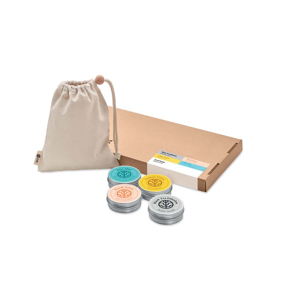Wegański zestaw podróżny ELEGANCE to znakomity wybór dla firm, które chcą podarować klientom lub pracownikom upominek łączący troskę o planetę z luksusem codziennej pielęgnacji. W ekologicznym pudełku z papieru z recyklingu kryją się cztery 50-gramowe kostki: do mycia ciała, włosów, peelingu twarzy oraz woda micelarna w kostce – wszystkie w 100 % wegańskie i produkowane w UE. Wraz z nimi otrzymujesz praktyczny woreczek z bawełny organicznej, dzięki któremu cały zestaw pozostaje lekki (tylko 0,442 kg) i kompaktowy (38 × 19,5 × 3 cm). 🌿