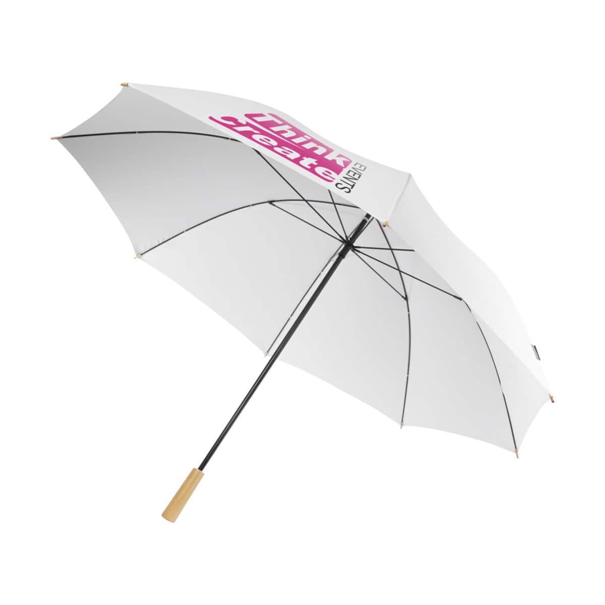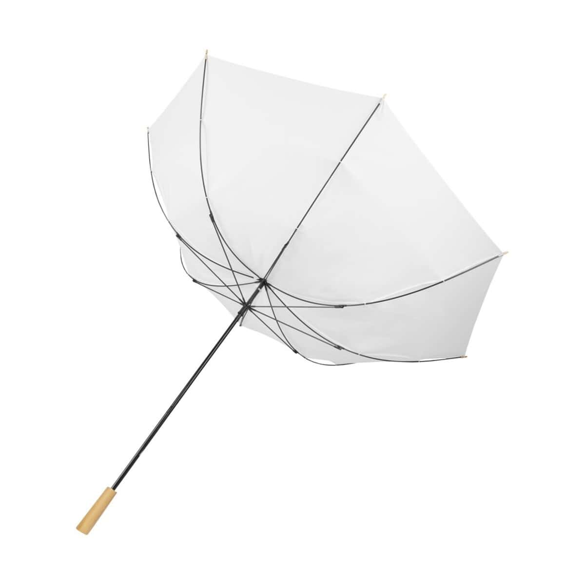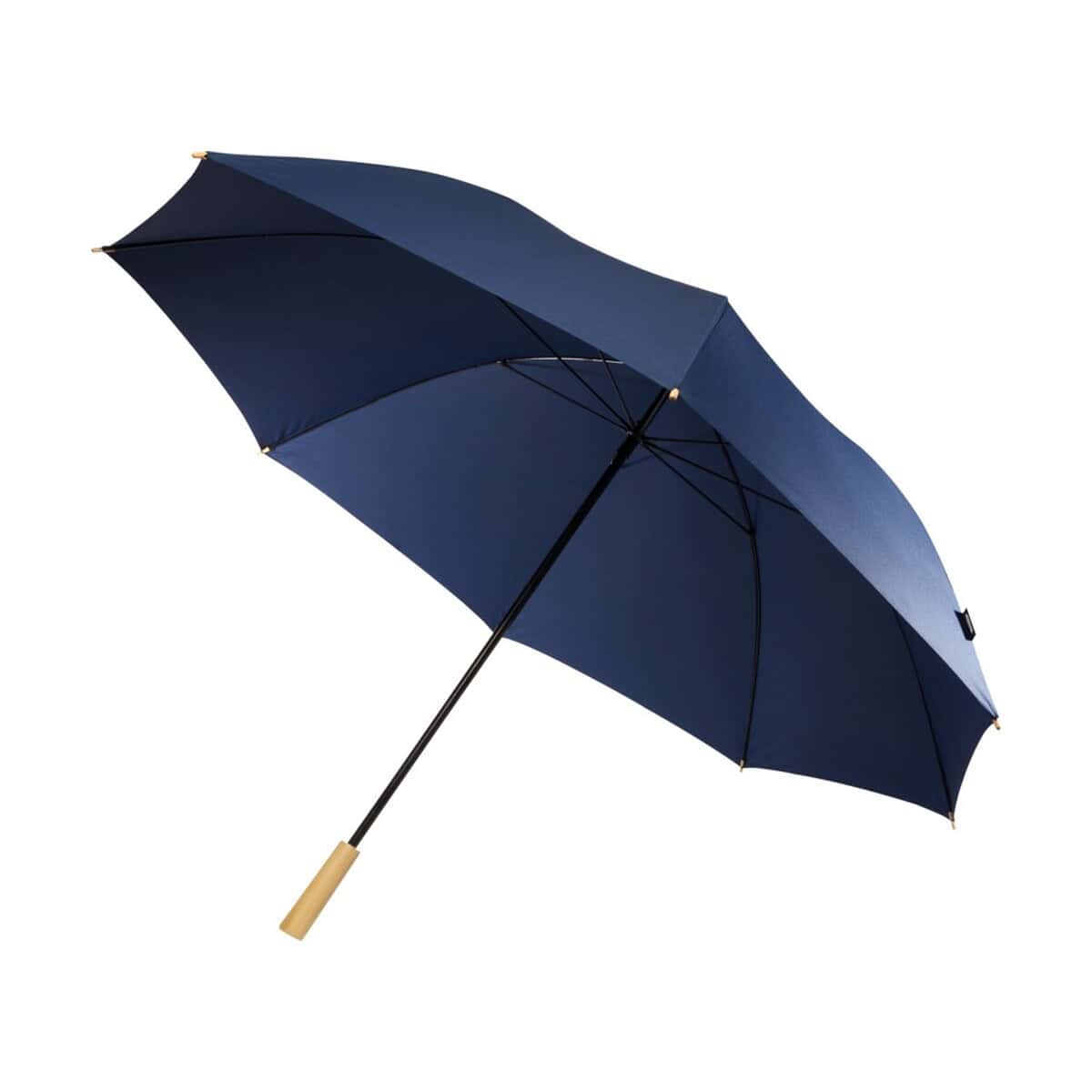 Wiatroodporny parasol golfowy 76 cm z PET z recyklingu Romee to znakomity wybór dla marek szukających upominku, który łączy elegancję z troską o środowisko 🌿. Duża czasza o średnicy 130 cm z poliestru Pongee z recyclingu PET skutecznie chroni dwie osoby przed deszczem i podmuchami wiatru, a stabilna metalowa rurka oraz elastyczne żebrowanie z włókna szklanego gwarantują niezawodność nawet na wietrznych greenach. Przyjemna w dotyku drewniana rękojeść podkreśla premium charakter gadżetu i dodaje mu klasy.