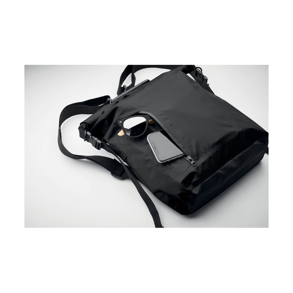 Produkt dostępny w trzech uniwersalnych kolorach – niebieskim, ciemnoszarym i czarnym – doskonale eksponuje logo, dlatego świetnie odnajduje się w kategorii Torby sportowe z logo i Plecaki z logo. Szeroka powierzchnia frontowa umożliwia czytelny nadruk reklamowy, dzięki czemu Wodoodporna torba RPET rolltop SCUBAROLL staje się nie tylko praktycznym akcesorium, ale również mobilnym nośnikiem promocji. To wyśmienity gadżet reklamowy dla branży outdoor, fitness, turystycznej, sportowej, a także firm technologicznych, które chcą podkreślić proekologiczne wartości swojej marki.
