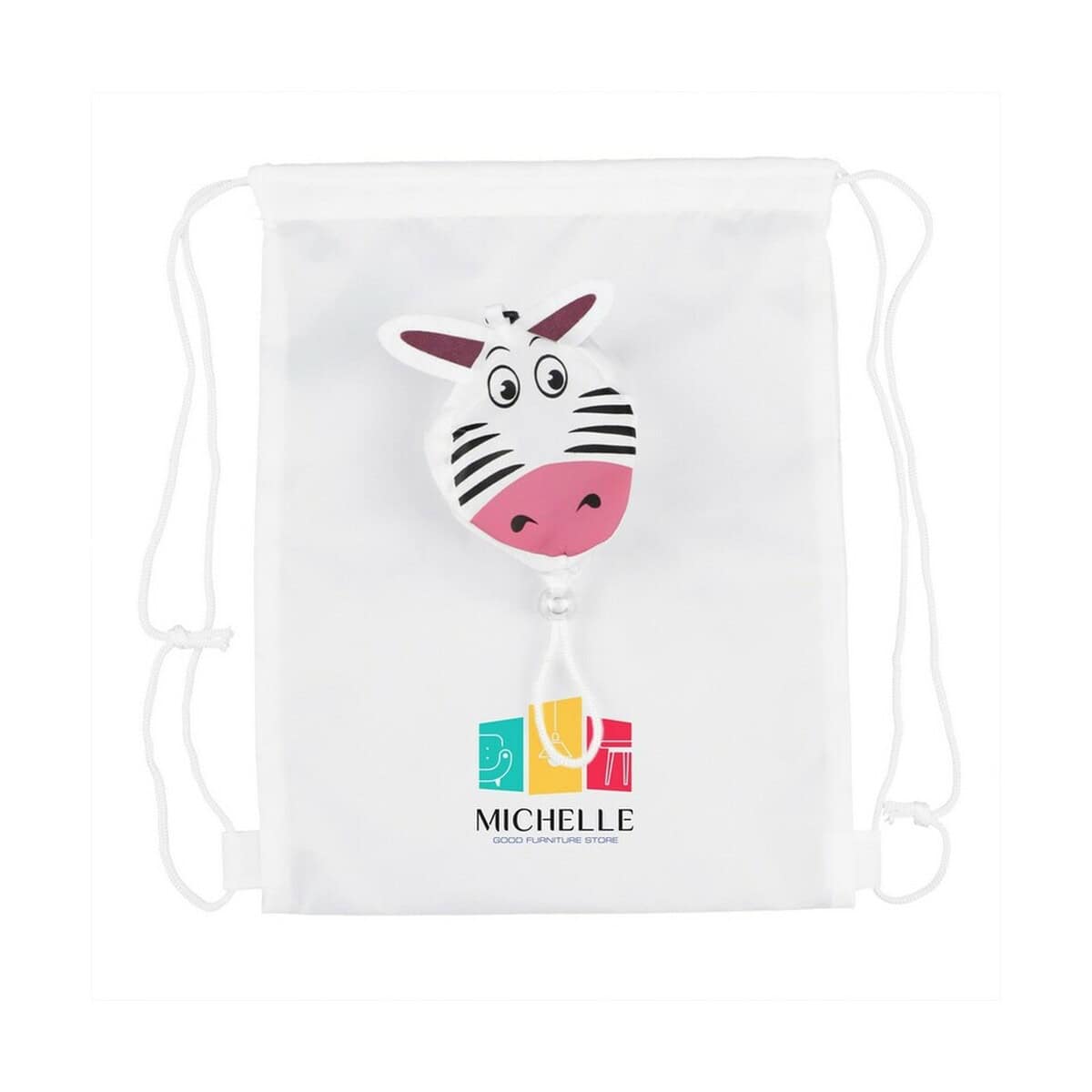 Worek ze sznurkiem zachwyca sprytną konstrukcją: po złożeniu chowa się w uroczy pokrowiec w kształcie zwierzątka – możesz wybrać zebrę, żyrafę, kaczuszkę lub wieloryba. Dzięki temu staje się nie tylko praktycznym, ale też niezwykle przykuwającym uwagę gadżetem 😊. To produkt stworzony z lekkiego, wytrzymałego poliestru 190T, ważący zaledwie 45 g, więc zawsze znajdziesz dla niego miejsce w kieszeni czy w schowku samochodu. Rozłożony oferuje solidną przestrzeń 26,5 × 32,5 cm, aby bez problemu pomieścić zakupy, strój sportowy albo materiały konferencyjne.