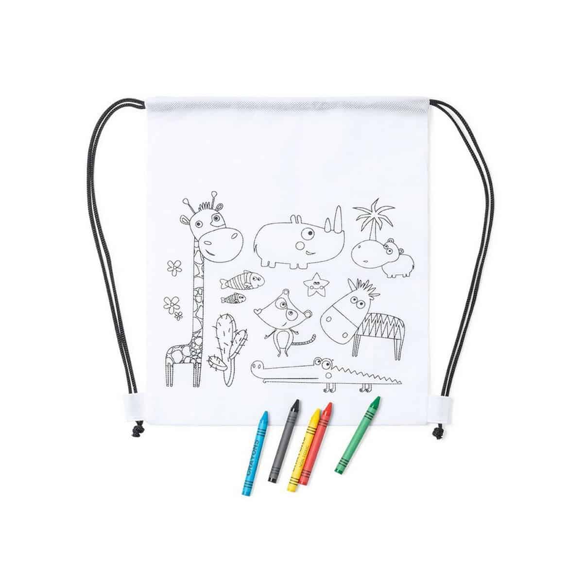 Worek ze sznurkiem do kolorowania, kredki to znakomity sposób, aby połączyć kreatywną zabawę z subtelną promocją marki 😊. Ten lekki gadżet wykonany z wytrzymałego materiału non-woven 80 g/m² posiada na froncie kolorowankę z motywem zwierząt, która aż prosi się o wypełnienie barwami. W komplecie znajduje się aż 5 kredek świecowych, dzięki czemu użytkownik może rozpocząć przygodę z kolorami od razu po otrzymaniu produktu. Dzięki praktycznemu sznurkowi, będącemu równocześnie zapięciem, worek można wygodnie nosić na plecach jak plecaczek, co dodatkowo zwiększa jego ekspozycję i mobilność logo.