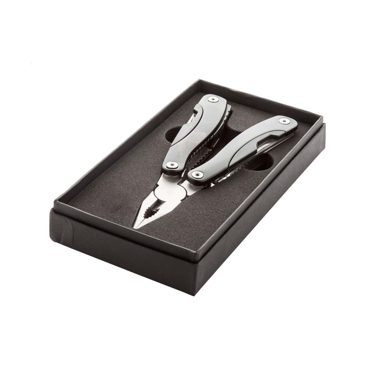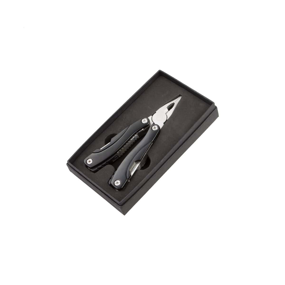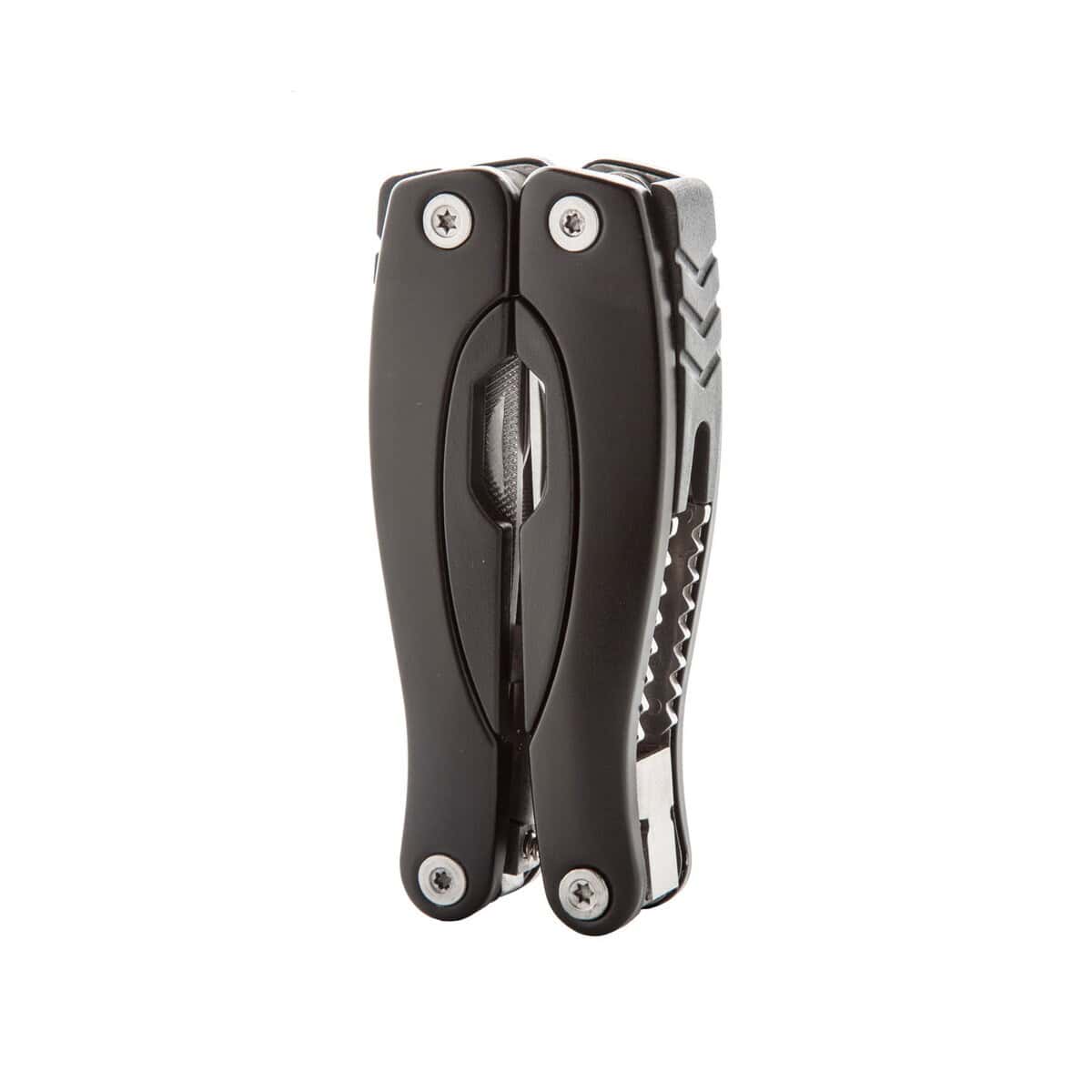 Workshop multi tool / narzędzie wielkofuncyjne to wszechstronny, starannie wykonany gadżet, który zachwyci każdego amatora majsterkowania i profesjonalistę. Wykonany z połączenia wytrzymałego aluminium oraz stali nierdzewnej, waży zaledwie 280 g, a jego kompaktowe wymiary 96 × 180 × 27 mm pozwalają nosić go w plecaku, skrzynce narzędziowej czy torbie na laptopa. Czarna, elegancka powłoka świetnie eksponuje firmowe logo, dzięki czemu narzędzie pełni również funkcję atrakcyjnego upominku reklamowego 😊.