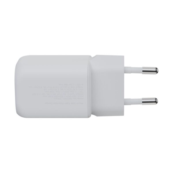 Ładowarka ścienna GaN² Ultra o mocy 35 W została zaprojektowana tak, aby była bardziej kompaktowa i wydajna niż kiedykolwiek wcześniej. Dzięki kompaktowej konstrukcji i dwóm portom ta ładowarka ścienna jest idealna w podróży, ale także doskonale nadaje się do biura lub domu. Aby zmniejszyć ilość odpadów i przyczynić się do bardziej zrównoważonej przyszłości, ładowarka została wykonana w 97% z tworzywa sztucznego pochodzącego z recyklingu. Moc: Zasilanie przez 1 port USB-C 35 o mocy W i 1 port USB-A o mocy 18 W z funkcją szybkiego ładowania 3.0 Dostarczana z instrukcją obsługi.
