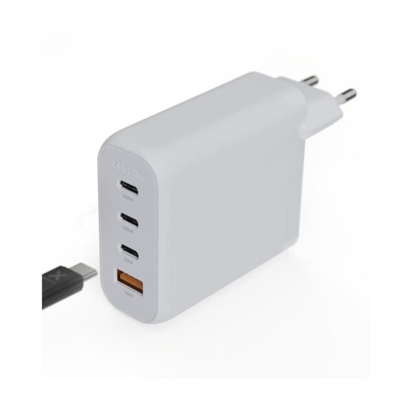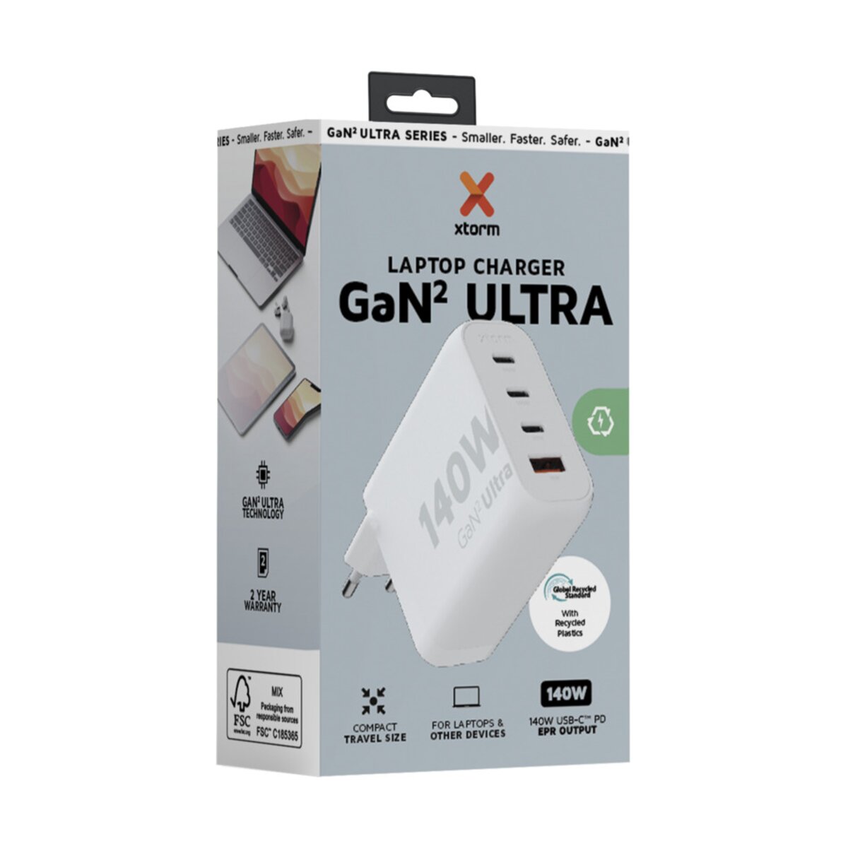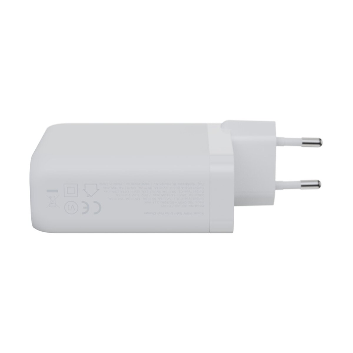 Ładowarka ścienna GaN² Ultra o mocy 140 W została zaprojektowana tak, aby była bardziej kompaktowa i wydajna niż kiedykolwiek wcześniej. Dzięki kompaktowej konstrukcji i czterem portom, ta ładowarka ścienna jest idealna w podróży, ale także doskonale nadaje się do biura lub domu. Aby zmniejszyć ilość odpadów i przyczynić się do bardziej zrównoważonej przyszłości, ładowarka została wykonana w 97% z tworzywa sztucznego pochodzącego z recyklingu. Moc: Zasilanie przez 2 porty x USB-C o mocy 140 W, 1 USB-C o mocy 20 W i 1 USB-A o mocy 18 W z funkcją szybkiego ładowania 3.0. Dostarczana z instrukcją obsługi.