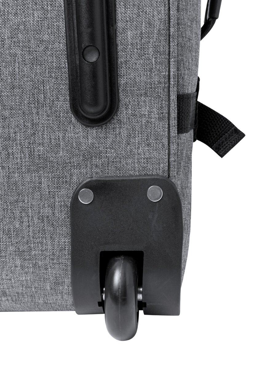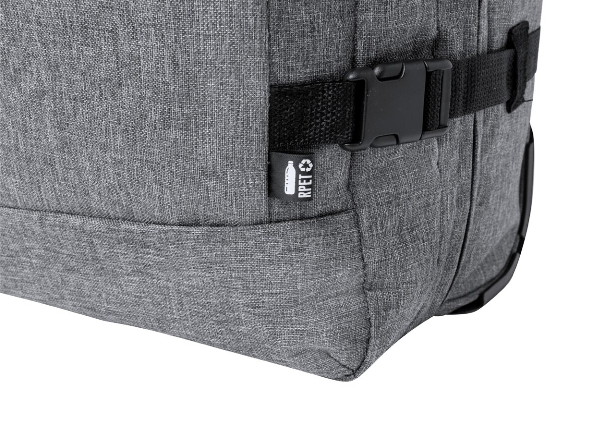 Torba/walizka na kółkach RPET pozwala na swobodne przemieszczanie się z wieloma bagażami, dzięki czemu podróżowanie jest szybsze, wygodniejsze i mniej męczące. Wykonana z wysokiej jakości materiału, zamkiem szyfrowym TSA i teleskopową rączką zapewnia maksymalną wygodę w trakcie użytkowania. Dodatkowo, dzięki charakterystycznej metce RPET na torbie/walizce, można łatwo zidentyfikować ekologiczne pochodzenie materiału. To idealny produkt dla każdego, kto szuka lekkiej, wytrzymałej i funkcjonalnej torby/walizki na kółkach.