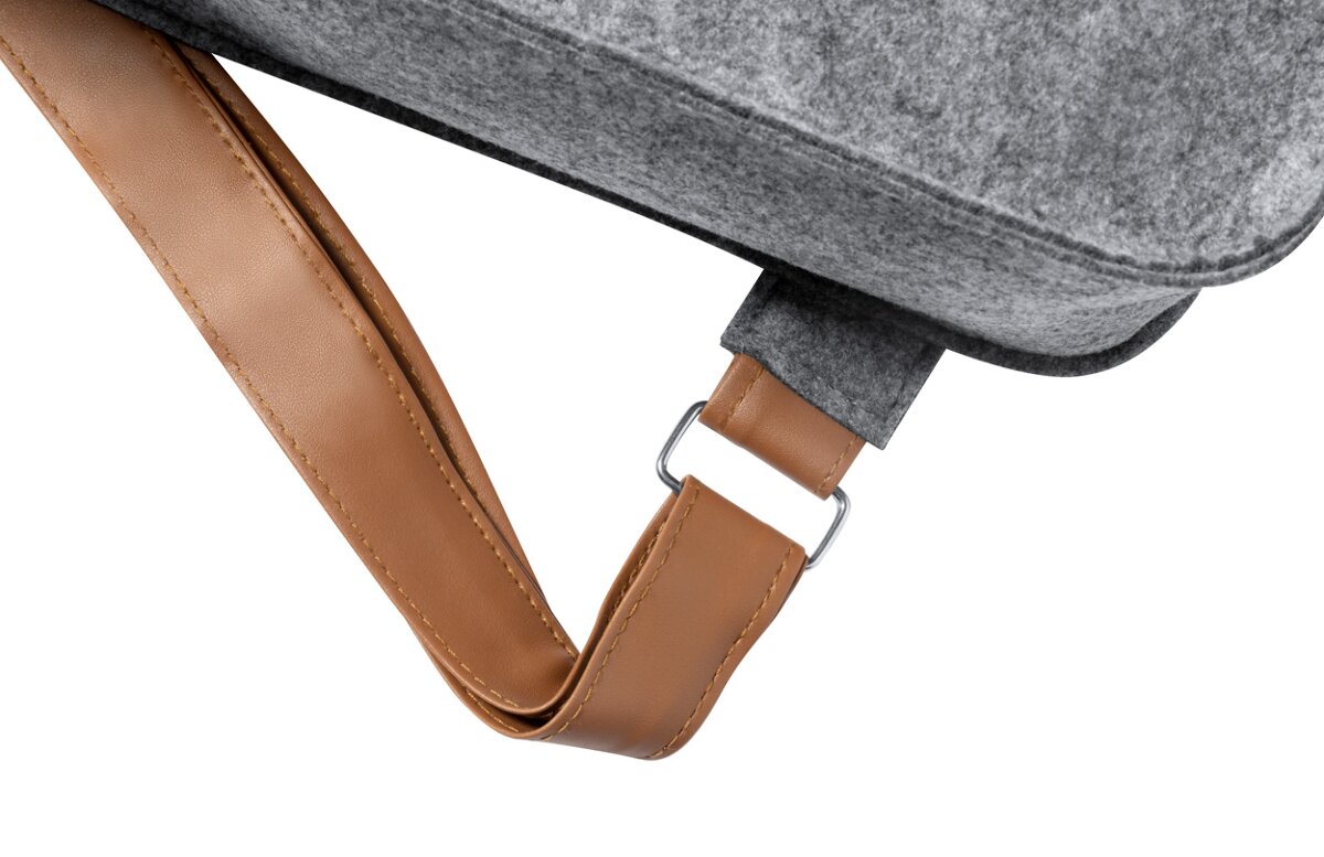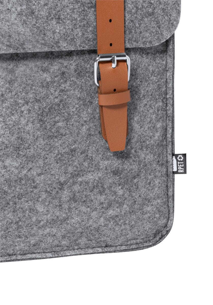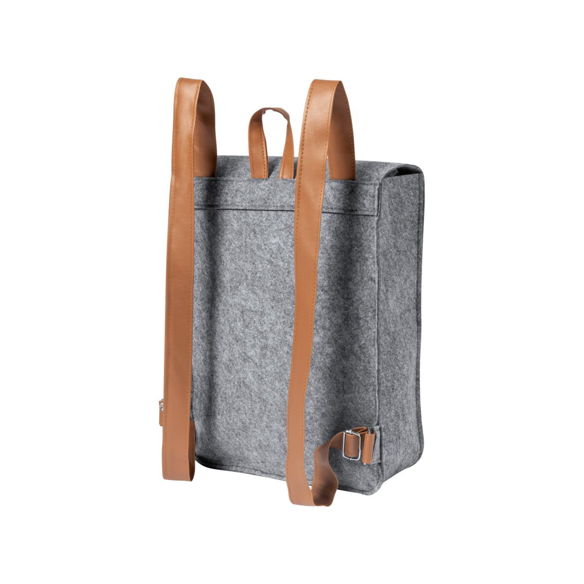 Plecak wykonany jest z trwałego i wytrzymałego filcu RPET, który jest w 100% wykonany z recyklingowanych butelek PET. Jest to odpowiedni wybór dla osób, które cenią sobie ekologiczne produkty. Trwałe i stylowe akcesoria ze skóry PU w postaci zapięcia na sprzączki i charakterystycznej metki RPET nadają produktowi wyjątkowy wygląd.