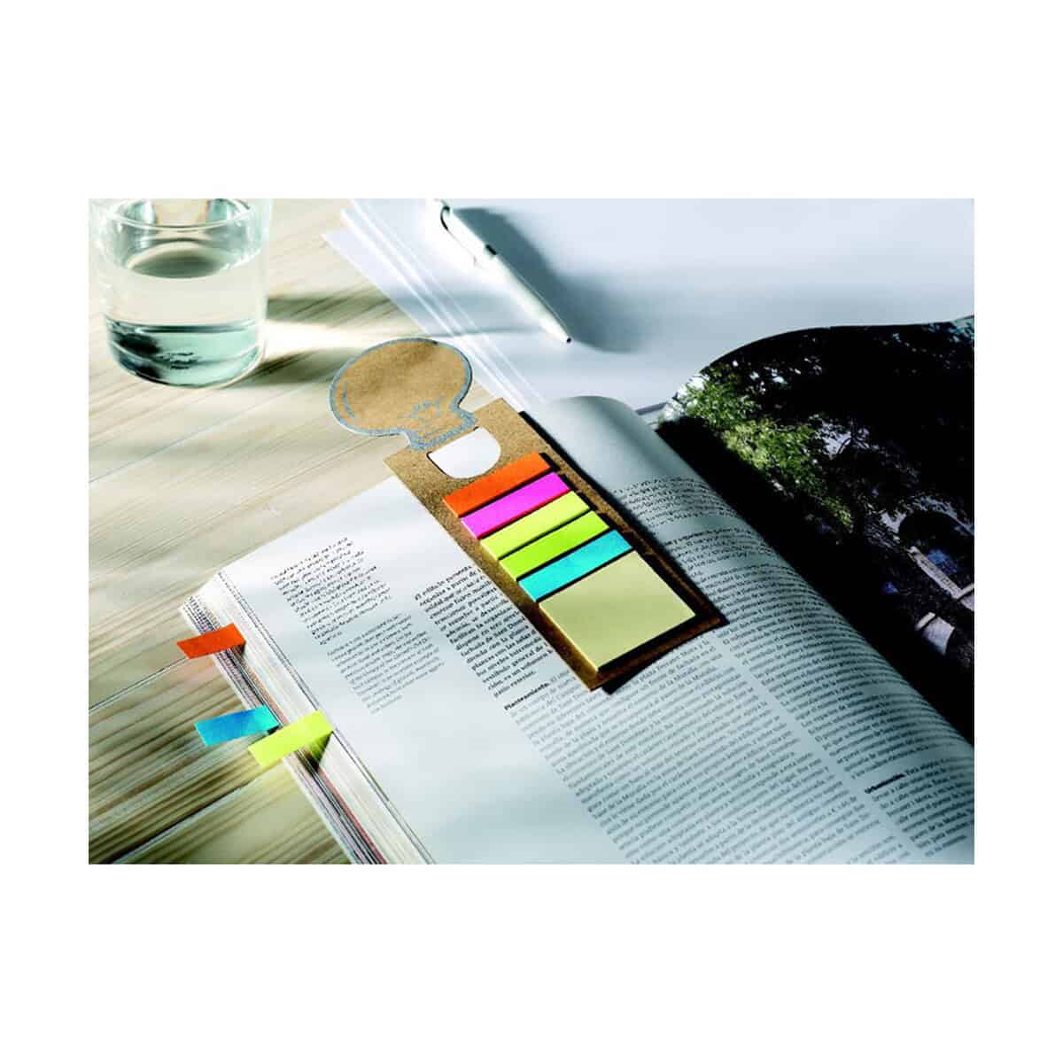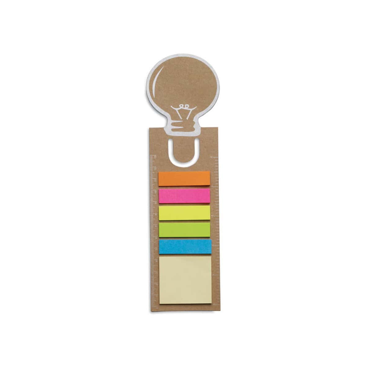 W środku znajdziesz 2-częściowy notatnik z karteczkami samoprzylepnymi: średnie żółte karteczki i 5 kolorowych markerów indeksujących. Dzięki temu jeden produkt zastępuje kilka biurowych drobiazgów, a dodatkowe funkcje, takie jak linijka 13 cm, jeszcze bardziej zwiększają jego praktyczność. Lekką, bo ważącą zaledwie 0,014 kg, konstrukcję o wymiarach 22 × 6 cm wykonano z przyjaznego środowisku paper. Neutralny beżowy kolor tworzy perfekcyjne tło pod Twoje logo lub hasło reklamowe.