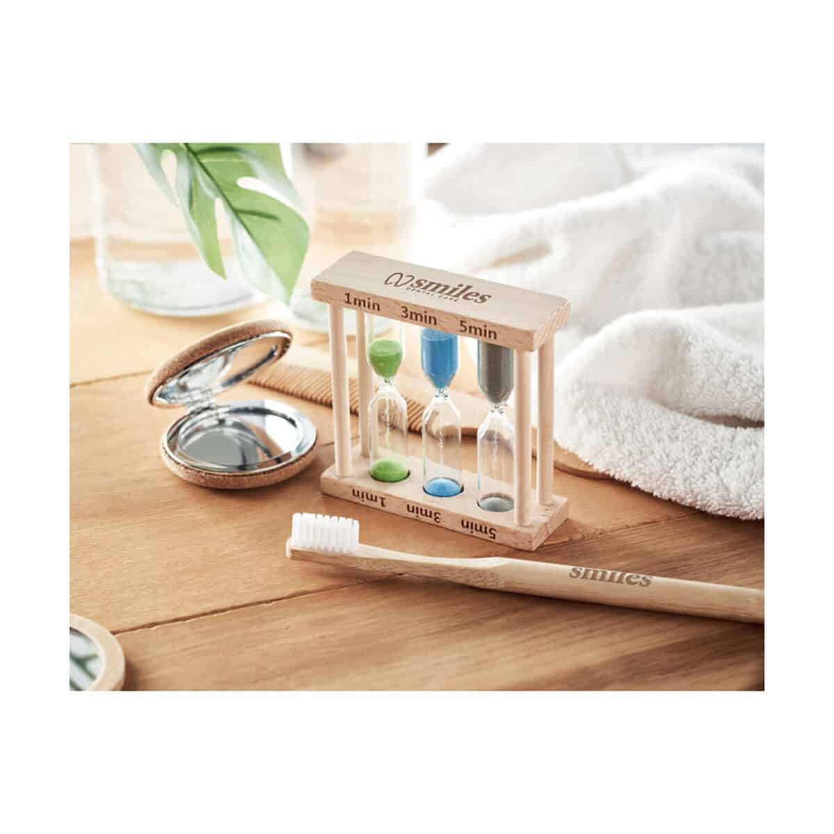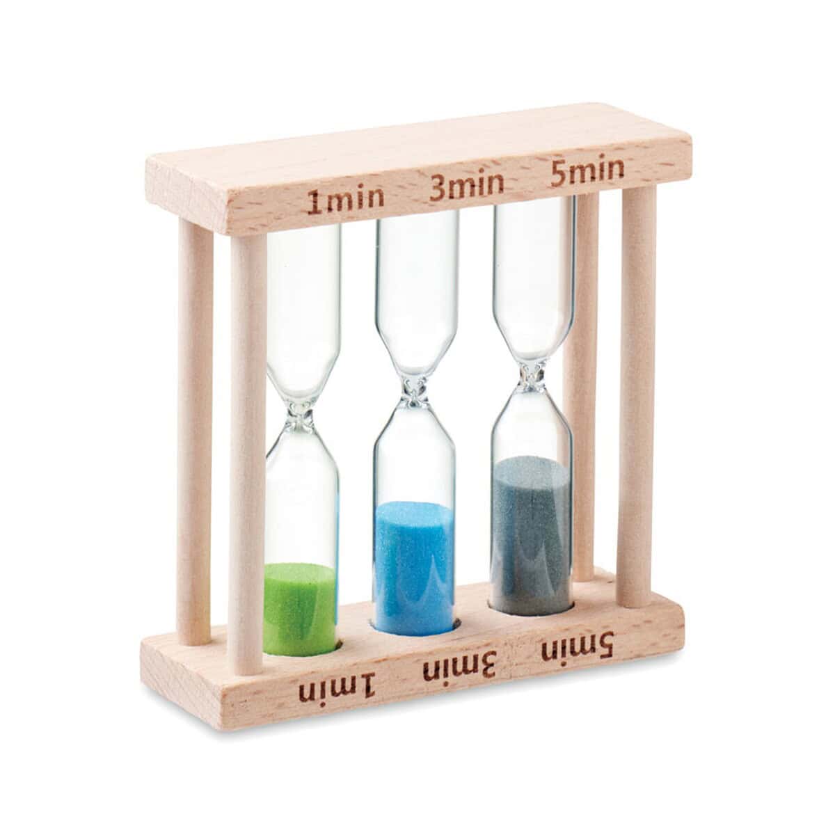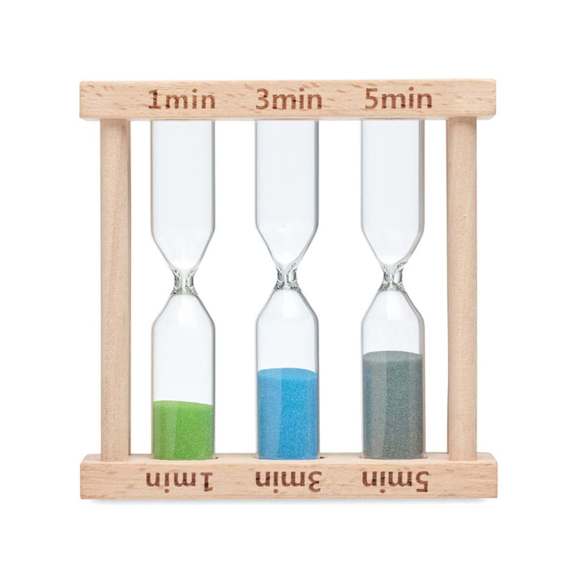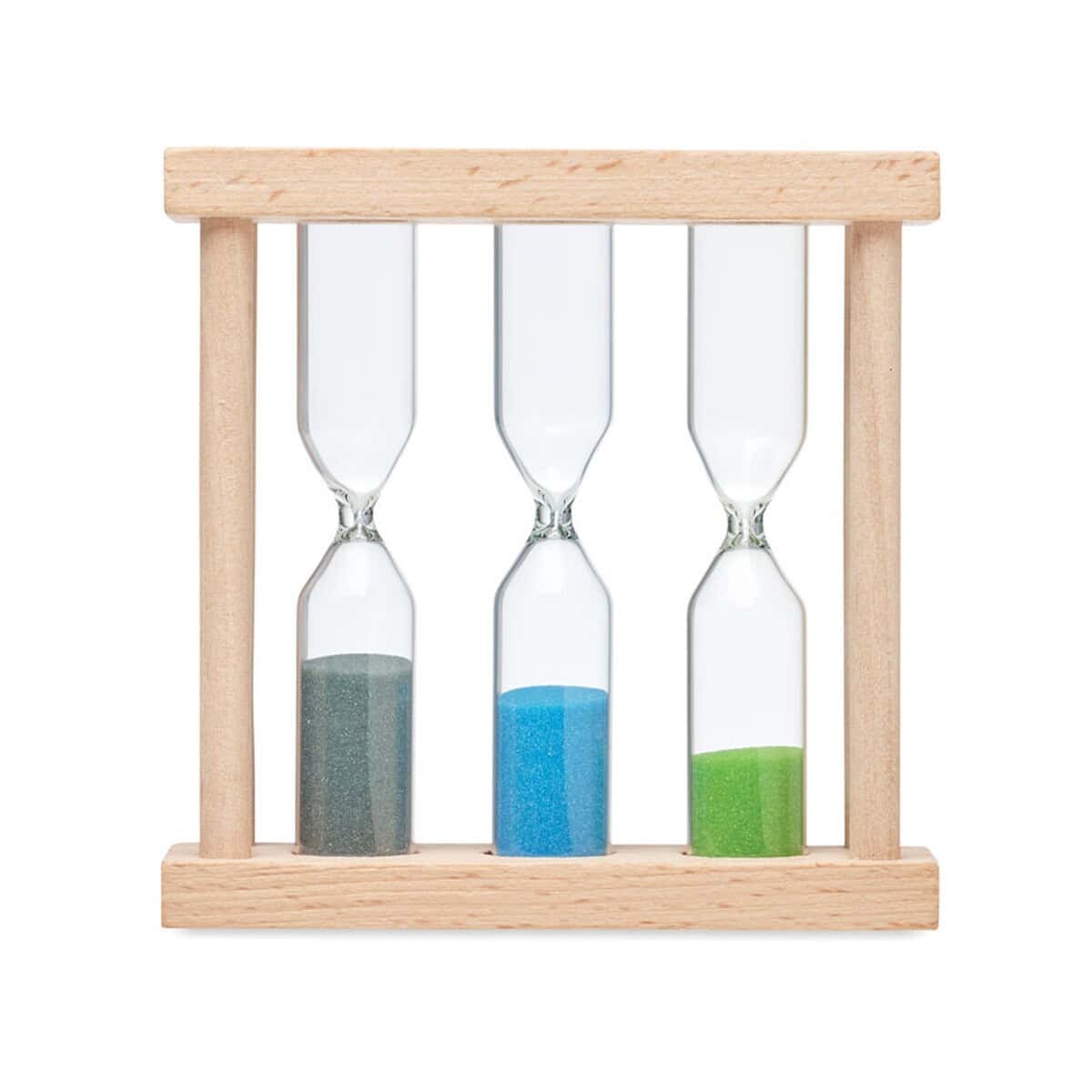 zestaw 3 zegarów piaskowych EI to wyjątkowe połączenie natury, funkcjonalności i estetyki, które natychmiast przyciąga wzrok oraz buduje przyjazny wizerunek marki 😊. Wykonany z gładkiego drewna, ten potrójny czasomierz kryje trzy różne klepsydry odmierzające około 1, 3 i 5 minut, dzięki czemu w jednym kompaktowym akcesorium zyskujesz trzy praktyczne interwały czasowe. Taka wszechstronność sprawia, że zestaw 3 zegarów piaskowych EI staje się znakomitym upominkiem zarówno do biura, jak i do strefy spa czy domowej łazienki.