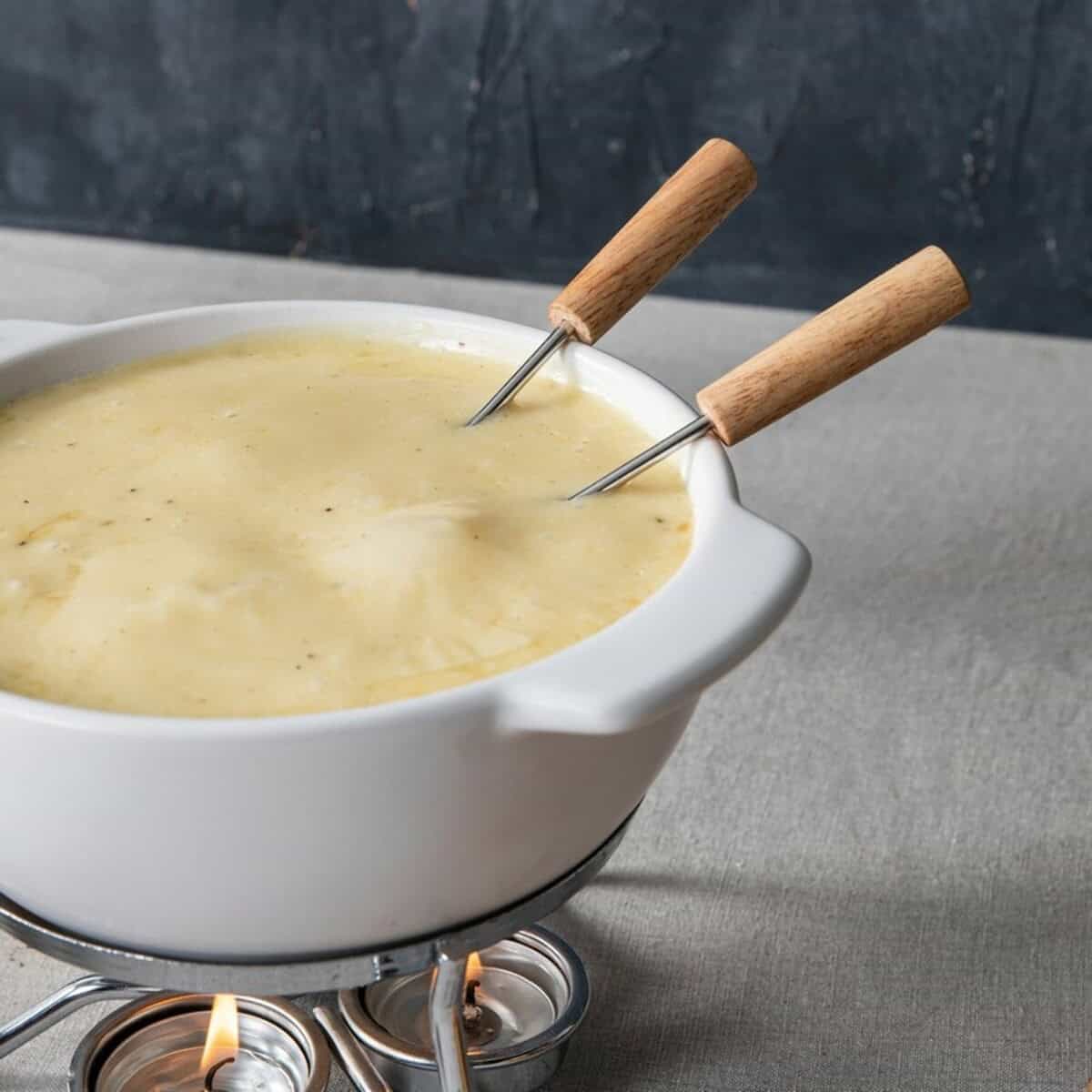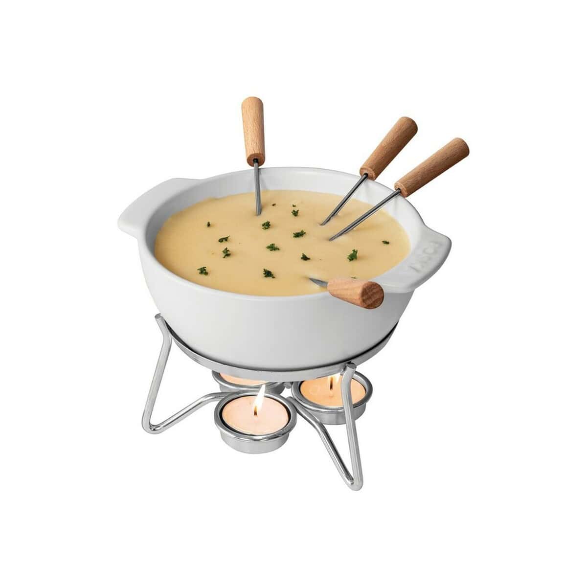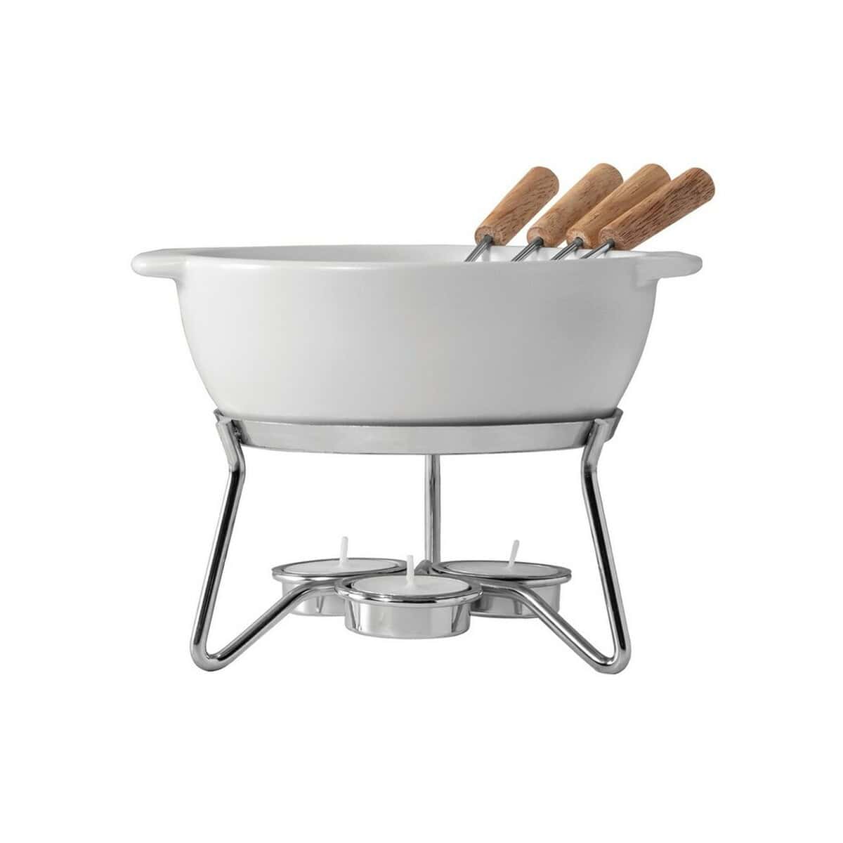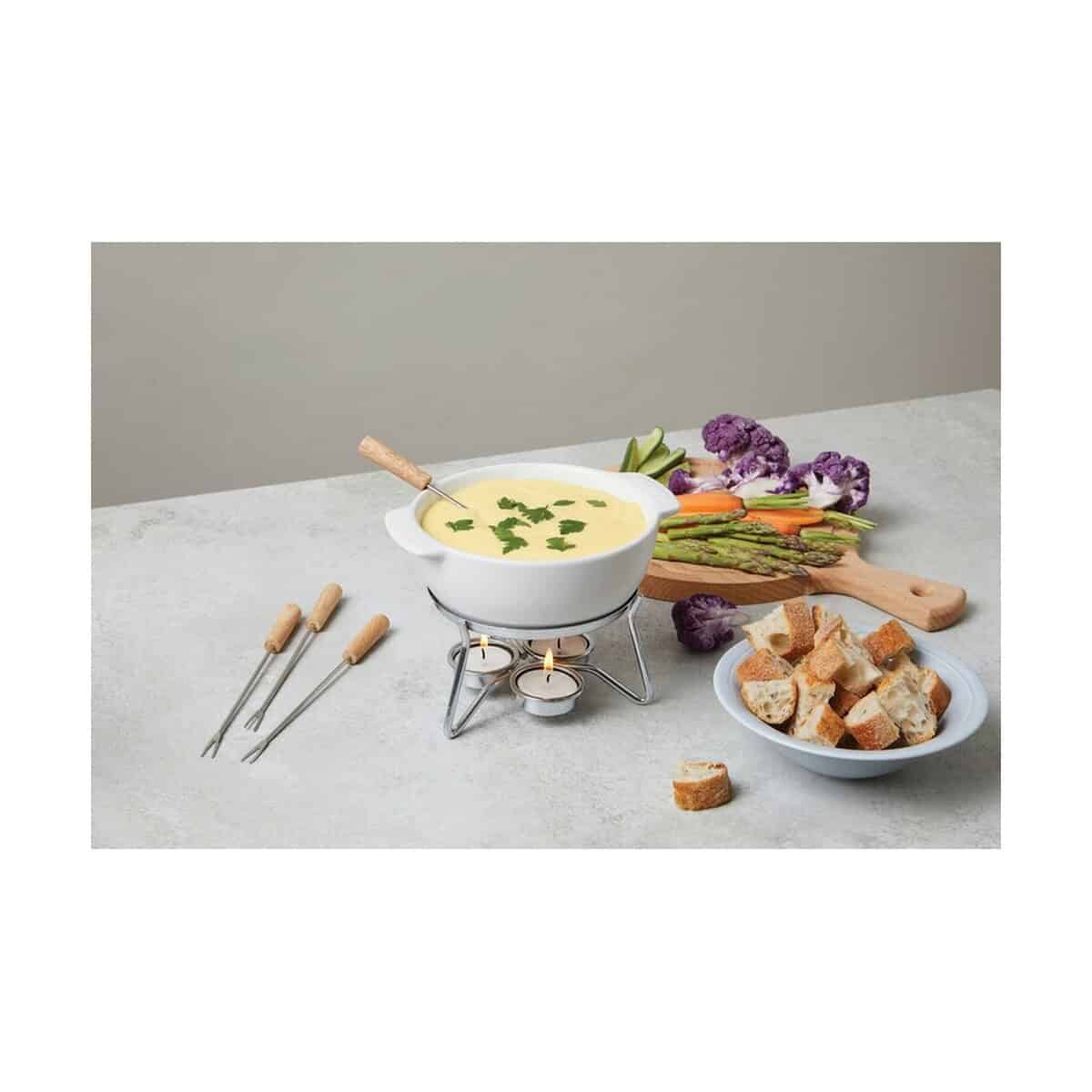 Zestaw do founde 750 ml BOSKA to wyszukany gadżet kulinarny, który pozwala w kilka chwil przygotować aż 500 g aksamitnego sera lub pełne 750 ml aromatycznego sosu. Jego misę wykonano z ceramika, a stabilny stojak oraz widelczyki – z eleganckiej stal nierdzewna, dzięki czemu całość prezentuje się wyjątkowo szykownie na każdym stole. Biel naczynia podkreśli barwy potraw, zaś przemyślany kształt Ø 15,5 cm utrzyma temperaturę specjału przez długi czas 😊.