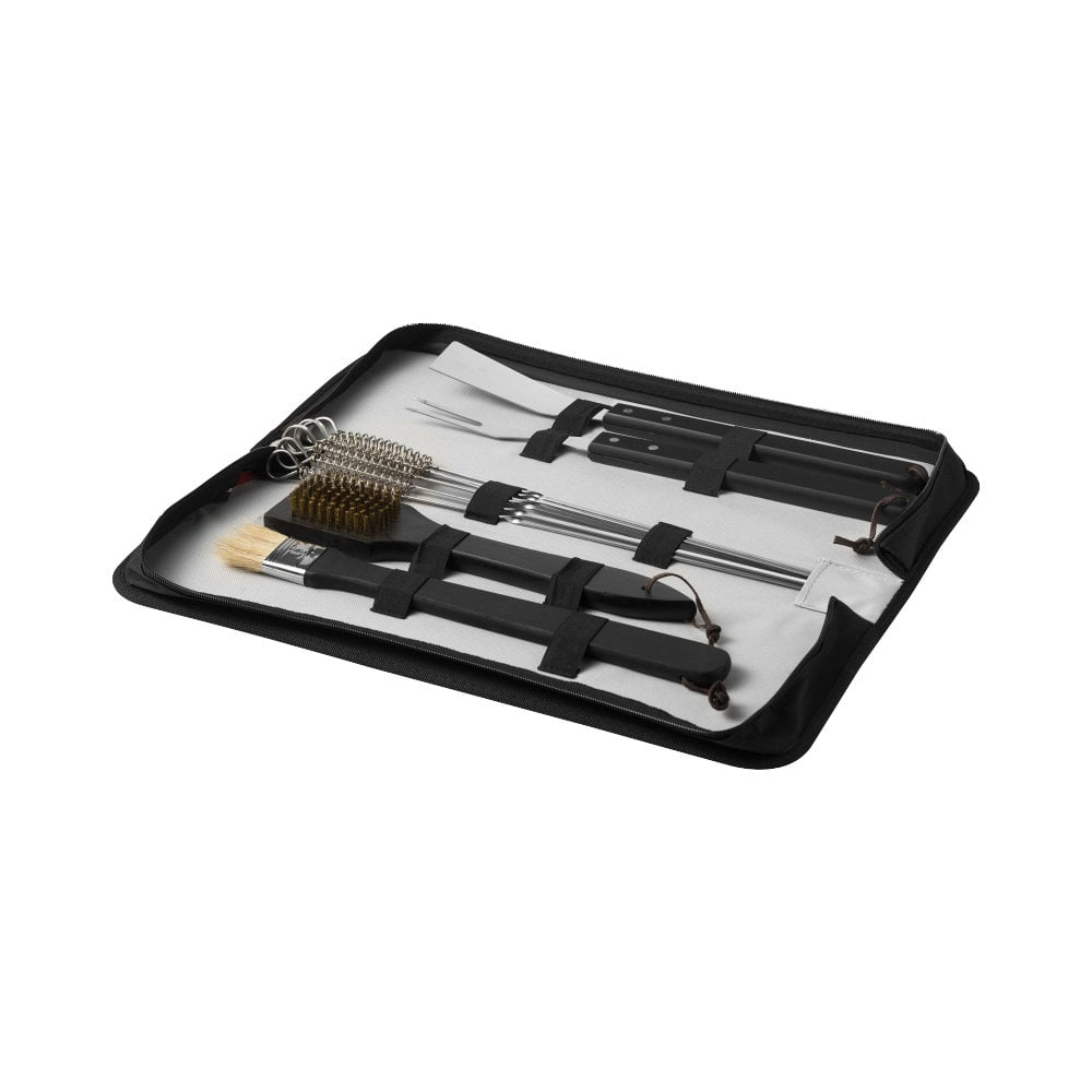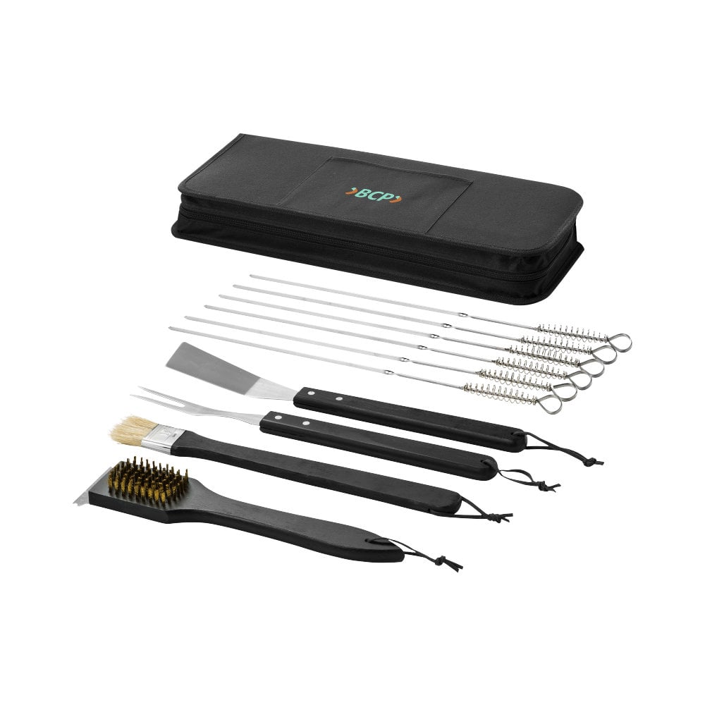 Ten zestaw akcesoriów do grilla to idealne narzędzie dla każdego kucharza obiadowego. Zestaw zawiera szpatułkę, pędzel, widelec, szczotkę do czyszczenia wszystkie z drewnianymi rączkami, sześć rożnów oraz zapinaną na zamek torbę z przednią kieszenią, dzięki czemu łatwo jest przechowywać i transportować wszystkie elementy. Co więcej, nadruk niemożliwy na poszczególnych elementach pozwala na estetyczne i trwałe ozdobienie całości. Ten zestaw akcesoriów do grilla to wszystko, czego potrzebujesz, aby uzupełnić swoje kulinarne doświadczenie.
