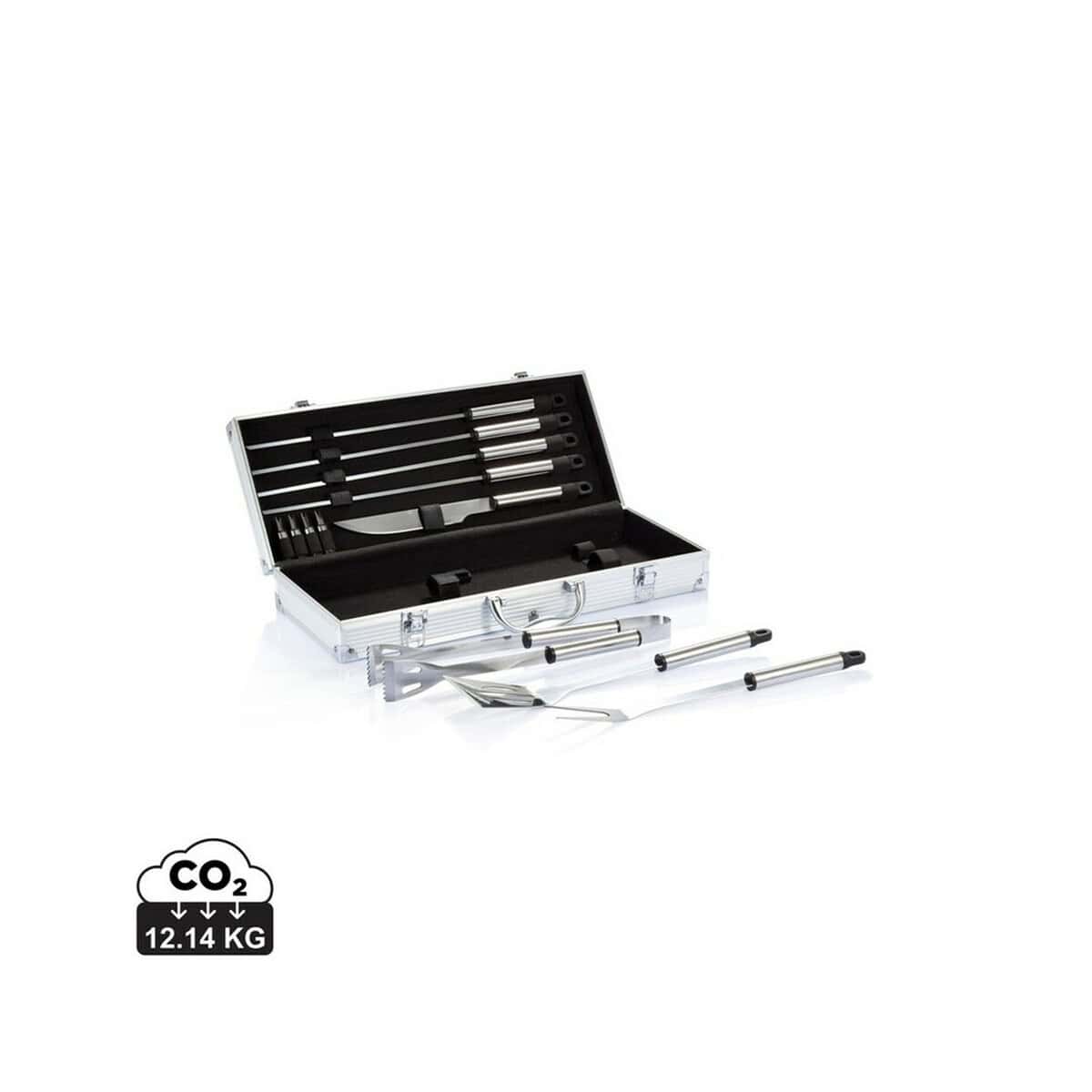 Komplet jest doskonały dla miłośników grillowania, klientów premium, pracowników nagradzanych za osiągnięcia oraz partnerów biznesowych, którym chcesz podziękować w niebanalny sposób 😊. Sprawdzi się w ogródkach restauracyjnych, na firmowych wyjazdach integracyjnych, a nawet w camperze – wszędzie tam, gdzie liczy się mobilność i niezawodność. Dzięki niskiej wartości śladu węglowego (12,14 kg CO₂) produkt wpisuje się w ekologiczne trendy, co dodatkowo podnosi jego atrakcyjność.