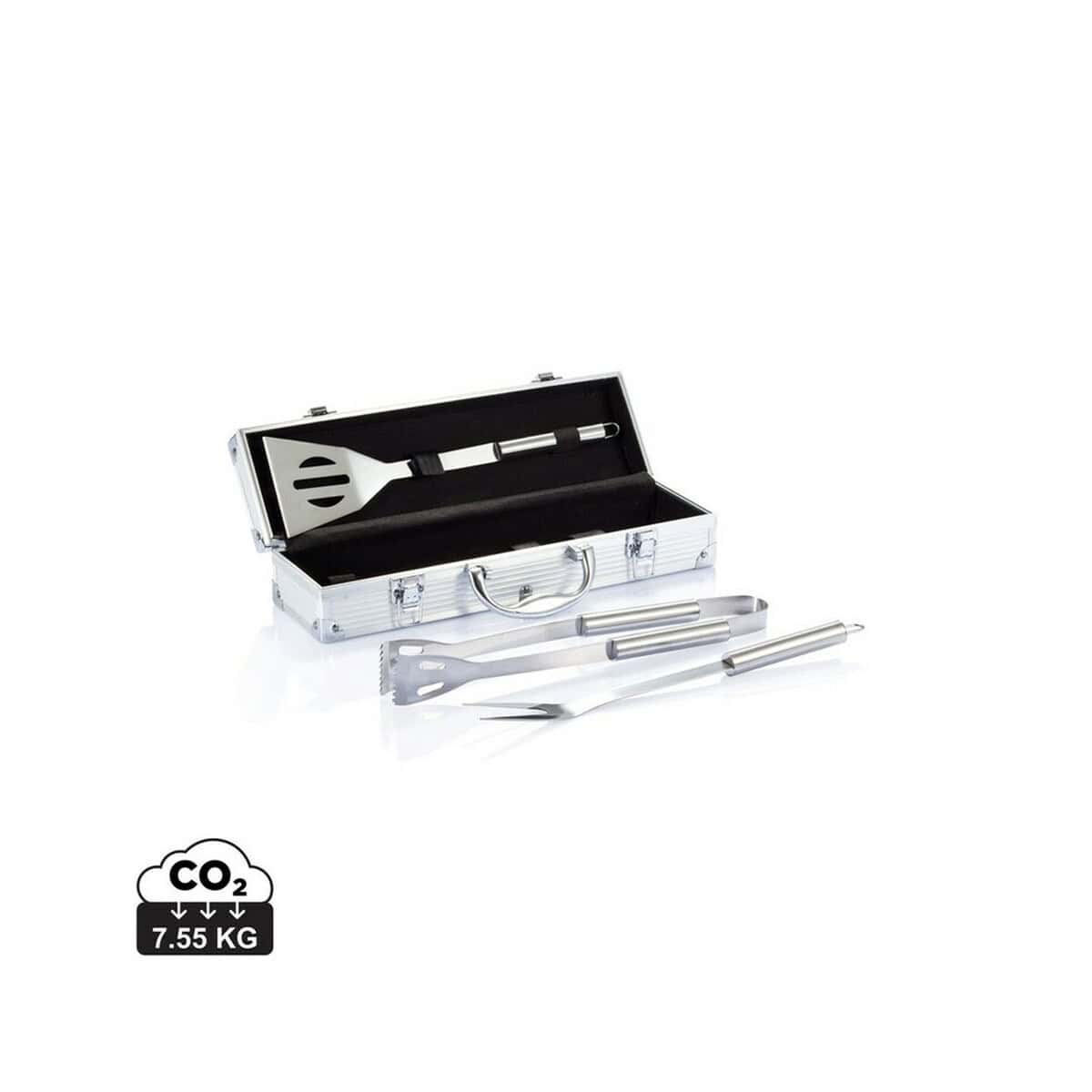 Zestaw do grilla, 3 el. to wyśmienity kompan letnich spotkań, który podniesie rangę każdego garden party oraz firmowego pikniku 🙂. Eleganckie aluminiowe pudełko z uchwytem kryje w sobie trzy najważniejsze akcesoria mistrza rusztu: szpatułkę, widelec z pokrywami ochronnymi oraz szczypce. Wszystkie narzędzia wykonano z najwyższej jakości stali nierdzewnej, dzięki czemu są odporne na korozję, łatwe w czyszczeniu i będą służyć przez wiele sezonów. Kompaktowe wymiary 38,0 × 10,0 × 8,0 cm i praktyczna waga 1095 g sprawiają, że zestaw bez trudu zmieści się w bagażniku lub firmowym plecaku.