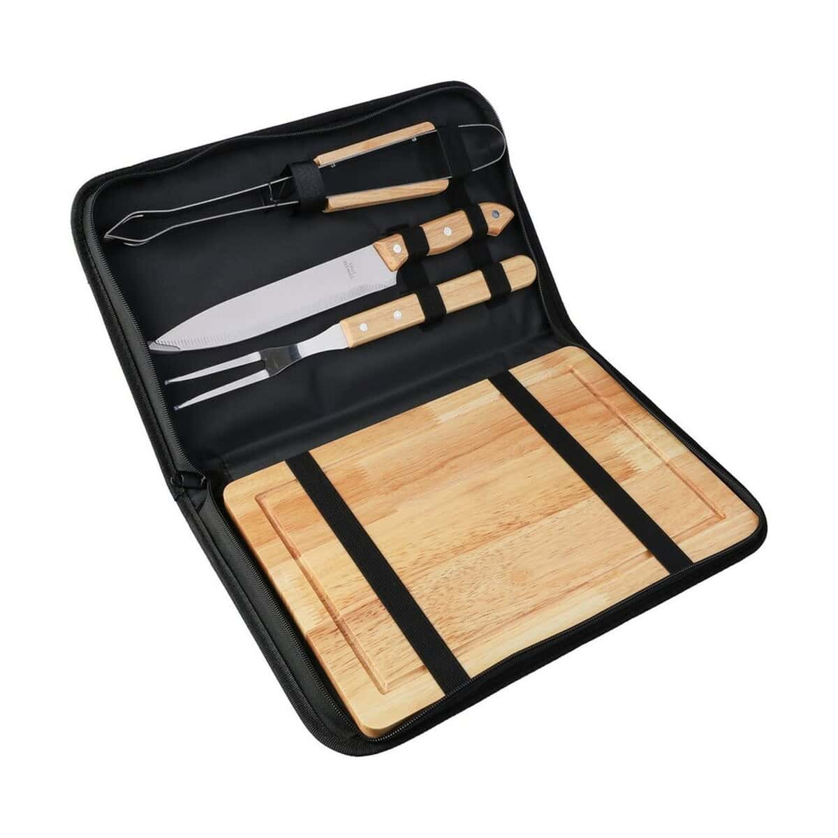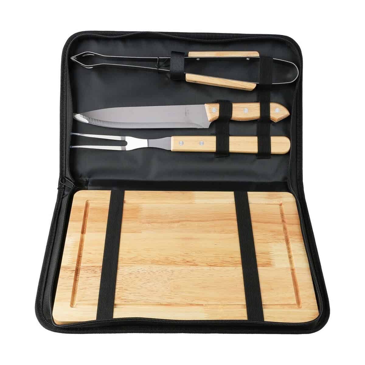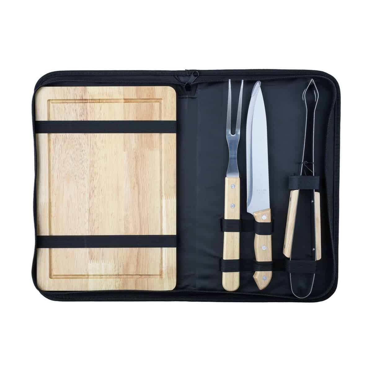 Zestaw do grilla to znakomity, wielofunkcyjny gadżet, który już na pierwszy rzut oka prezentuje się elegancko dzięki głębokiej czerni torby zapinanej na zamek. Wewnątrz mieszczą się praktyczne akcesoria: szczypce, nóż, widelec oraz drewniana deska do krojenia, czyli wszystko, czego potrzebujesz, by przygotować perfekcyjne steki czy warzywne szaszłyki 🔥. Każdy element wykonano z stali nierdzewnej i drewna, co gwarantuje trwałość oraz łatwe czyszczenie. Torba z poliestru z otwartą kieszenią z przodu ułatwia transport, a jej kompaktowe wymiary 37 × 4 × 24,5 cm i waga 1254 g sprawiają, że zabierzesz zestaw nawet na spontaniczny piknik.