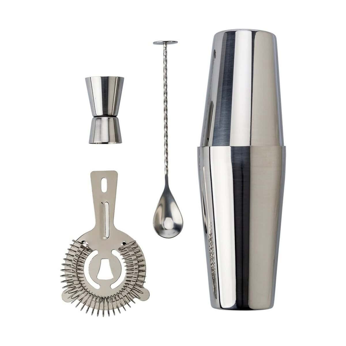 Zestaw do koktajli, shaker, 4 el. to prawdziwie wszechstronny gadżet, który zachwyci zarówno profesjonalnego barmana, jak i amatora domowych drinków. W skład kompletu wchodzi shaker 750 ml, miarka 30 ml, barmańska łyżka, sitko oraz praktyczny bawełniany pokrowiec, dzięki któremu cały zestaw jest zawsze pod ręką i gotowy do akcji. Całość wykonano z eleganckiej, odpornej na korozję stali nierdzewnej 304, co gwarantuje długowieczność i łatwe czyszczenie. Kompaktowe wymiary 8,7 × 9 × 9 × 22,5 cm sprawiają, że produkt zmieści się w szafce kuchennej, barowej szufladzie czy torbie eventowej. 🙂