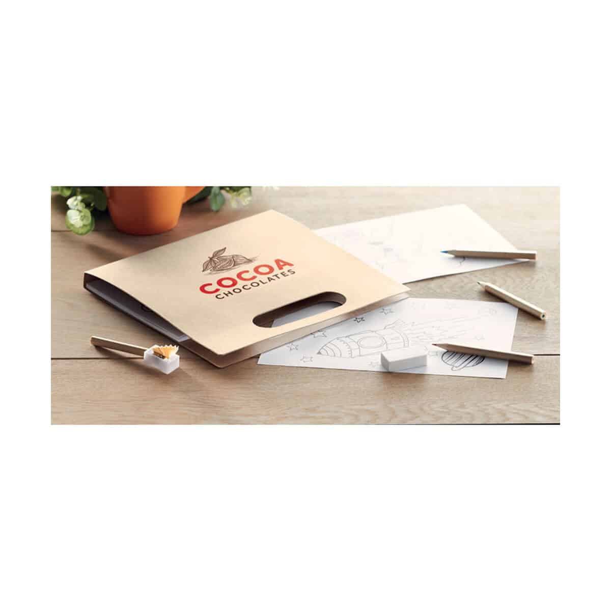 Zestaw do kolorowania FOLDER2 GO można zamienić w wyjątkowy gadżet promocyjny: wystarczy dodać firmowe logo lub kolorowy nadruk, by stał się atrakcyjnym produktem reklamowym. Branża turystyczna, edukacyjna, hotelarska i gastronomiczna skorzysta na takim rozwiązaniu, bo dzieci zajmują się twórczością, a dorośli zapamiętują markę. Świetnie nadaje się także na targi i konferencje tematyczne, gdzie rodzinny charakter wydarzenia wymaga praktycznych, angażujących upominków.