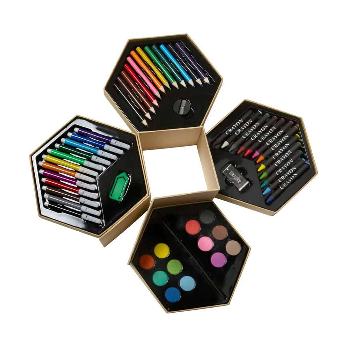 W zestawie znajdziesz kredki, pastele, flamastry i ołówki wykonane z drewna oraz wosku, a także akcesoria z wytrzymałego plastiku i papieru. Wymiary 19,5 × 10 cm oraz waga 498 g czynią całość poręczną, więc łatwo schowasz ją do torby czy szkolnego plecaka. To wybór doskonały dla młodych artystów, studentów kierunków kreatywnych, a także dla dorosłych, którzy w pracy lub w domu lubią dać upust wyobraźni. Niezależnie, czy szkicujesz projekt ogrodu, czy kolorujesz antystresową mandalę – ten zestaw sprawdzi się wyśmienicie.
