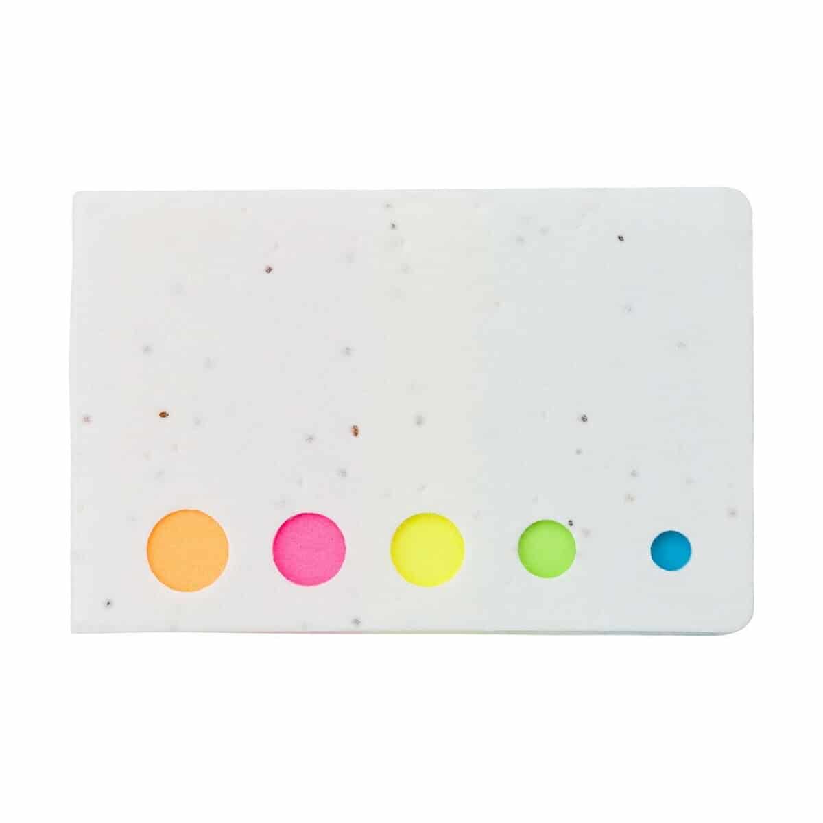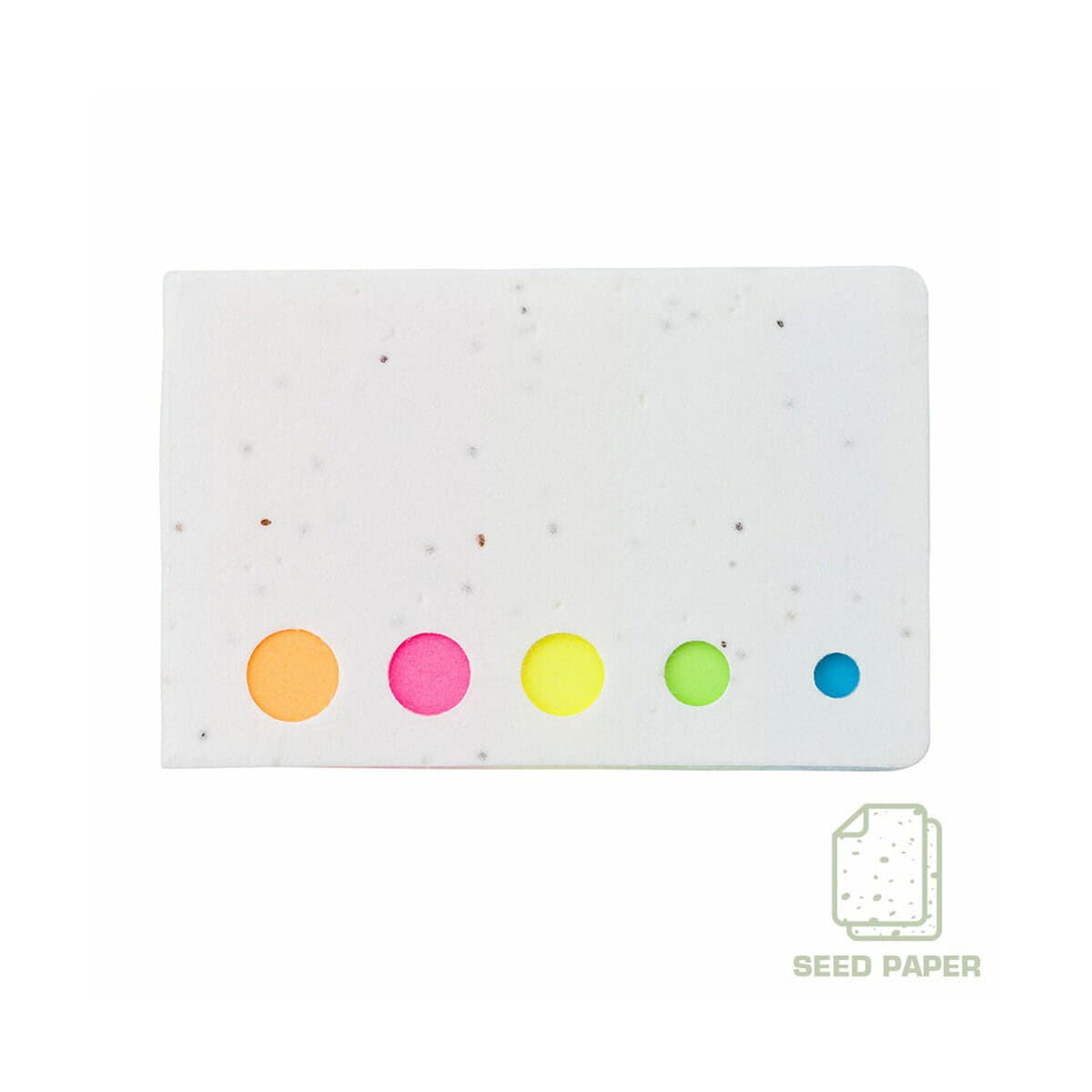 Branże, które szczególnie skorzystają na dystrybucji takiego produktu, to firmy ekologiczne, marki kosmetyków naturalnych, sklepy ogrodnicze, biura architektoniczne oraz wszystkie przedsiębiorstwa podkreślające odpowiedzialność społeczną. Dzięki kompaktowym wymiarom 8,3 x 5,4 x 0,4 cm oraz pięciu żywych kolorom karteczek (po 25 sztuk w każdym odcieniu) zestaw bez problemu zmieści się w kieszeni, torebce czy organizerze. Uniwersalny biały odcień okładki wykonanej z innowacyjnego materiału – papieru z nasionami – stanowi doskonałe tło na subtelny nadruk lub wyraziste logo.