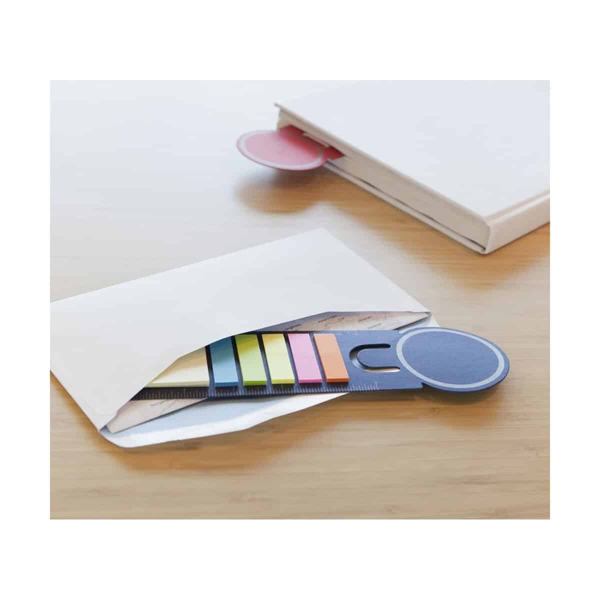 Zestaw do notatek, karteczki samoprzylepne, zakładka do książki, linijka, notatnik to prawdziwie uniwersalny gadżet, który zamieni codzienne zapiski w skuteczne narzędzie promocji 😊. W jednym, smukłym pakiecie o Wymiary: 22 x 6 x 0,1 cm i zaledwie Waga: 11 g znajdziesz linijkę 13 cm / 5 cali, zakładkę z miejscem pod nadruk, pięć kolorów małych karteczek samoprzylepnych oraz podręczny notes 4 x 4,5 cm. Całość wykonana z przyjaznych środowisku materiałów: Materiał: karton, papier, dostępna w trzech eleganckich barwach: Kolory: granatowy, czerwony, brązowy. Dzięki temu Twój reklamowy przekaz będzie widoczny zarówno w biurze, jak i w domu klienta.