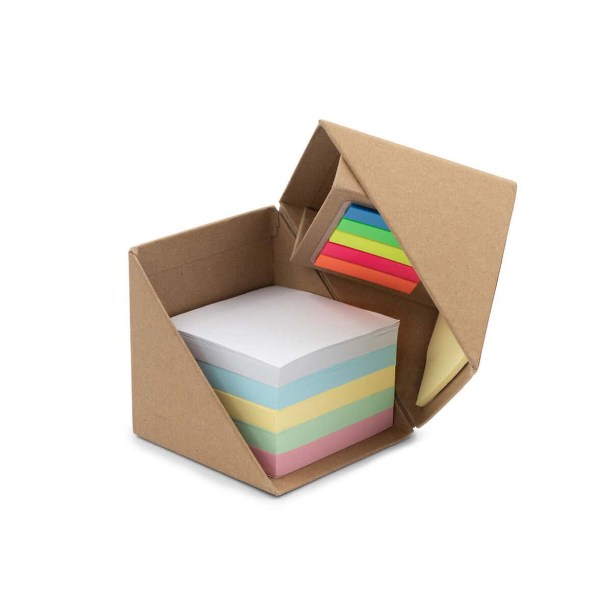 Zestaw do notatek „kostka”, notatnik, karteczki samoprzylepne, pojemnik na przybory do pisania | Zachariah to prawdziwy multitalent na biurku, który w zgrabnej, składanej formie 9 × 9 × 9 cm łączy aż trzy funkcje: notatnik, kolorowe karteczki i organizer ✨. Po rozłożeniu (18 × 8,8 × 8,8 cm) zamienia się w kompaktowe centrum dowodzenia, oferując 500 pustych kartek w 5 kolorach, 100 mini karteczek samoprzylepnych oraz 50 większych żółtych karteczek samoprzylepnych. Wewnętrzna przegroda służy jako pojemnik na przybory do pisania, dzięki czemu wszystkie akcesoria masz pod ręką – bez nieporządku i strat czasu.