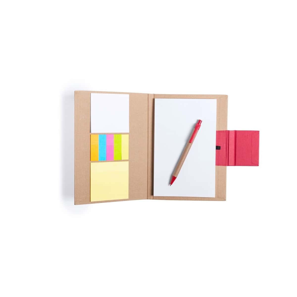 Zestaw do notatek, notatnik ok. A5, karteczki samoprzylepne, długopis to prawdziwie wszechstronny gadżet, który odmieni codzienną organizację zadań i spotkań. W poręcznej okładce z wytrzymałego kartonu z recyklingu kryje się notatnik A5 z 50 czystymi kartkami, komplet dużych oraz małych karteczek samoprzylepnych i ekologiczny długopis – wszystko, czego potrzebujesz, aby szybko zapisać inspirację czy ważne informacje w biurze, na uczelni i w domu 😊. Dzięki kompaktowym wymiarom: 14,5 x 21 x 1,8 cm i wadze zaledwie 240 g łatwo zmieści się w teczce, torbie konferencyjnej lub plecaku.
