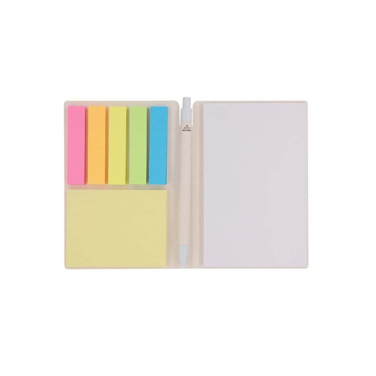 Zestaw do notatek ze zrecyklingowanych kartoników po mleku, notatnik, karteczki samoprzylepne, długopis to wyśmienity, ekologiczny gadżet reklamowy, który podkreśli odpowiedzialność środowiskową Twojej marki 😊. Wykonany z przetworzonych opakowań po mleku, waży jedynie 90 g i mieści się w dłoni (10 × 14 × 1,3 cm), co czyni go wygodnym towarzyszem codziennych zadań. W komplecie znajdziesz 50 klasycznych karteczek (6,4 × 8,2 cm), 250 mini zakładek (1,5 × 6,4 cm), notatnik z 50 czystymi stronami oraz długopis z niebieskim wkładem – wszystko w jednym ekologicznym etui.