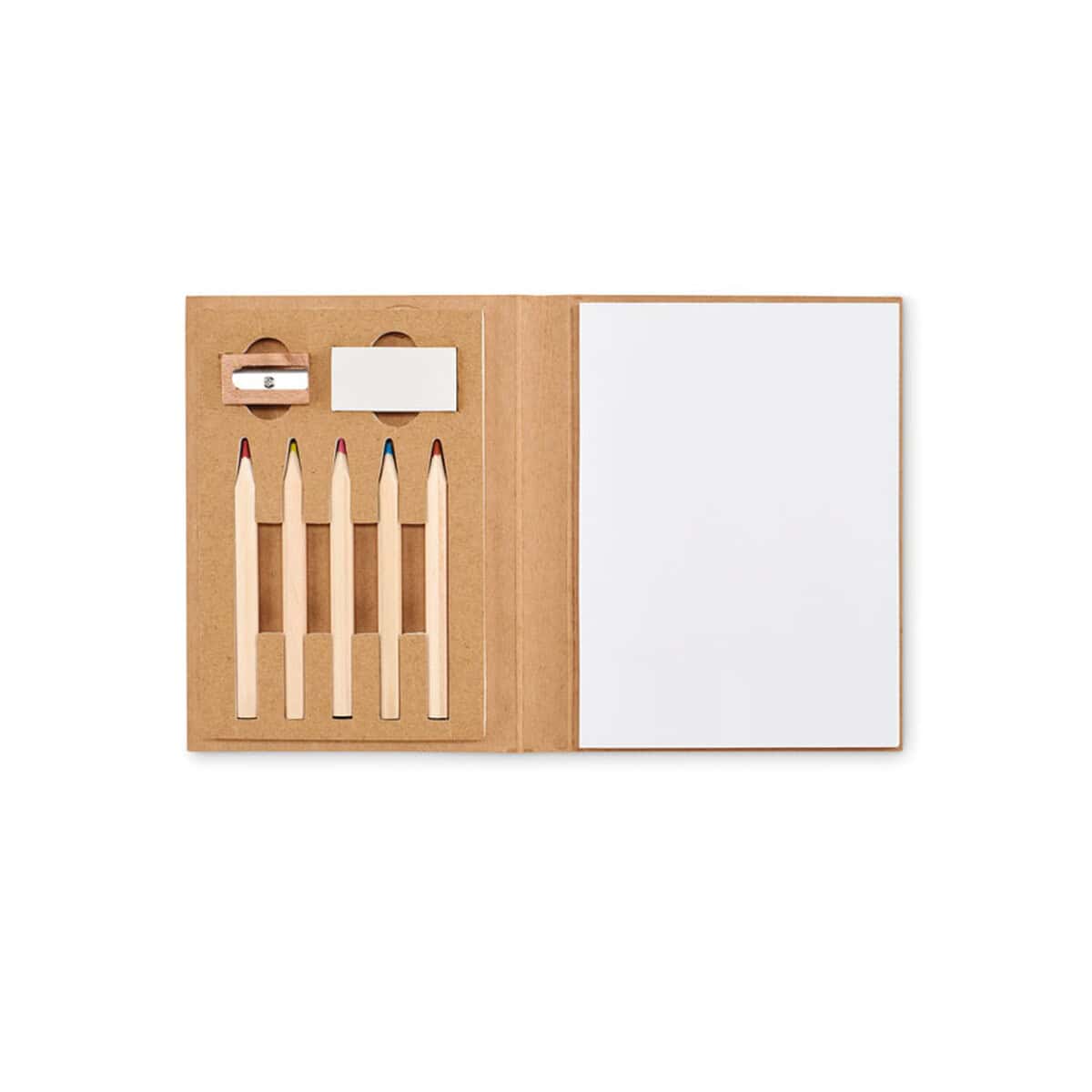 Jego kompaktowe Wymiary: 14,5 x 10,5 cm i lekka Waga: 0,125 kg ułatwiają dystrybucję podczas targów, eventów czy konferencji. Ekologiczny Materiał: papier i naturalny Kolor: beżowy podkreślają prośrodowiskowy charakter, co dodatkowo wzmacnia przekaz reklamowy. W zestawie znajdziesz trwałe, drewniane kredki, dzięki którym dzieci stworzą wyjątkowe rysunki, a także użyteczną gumkę i temperówkę – wszystko schludnie zapakowane, gotowe do rozdania.
