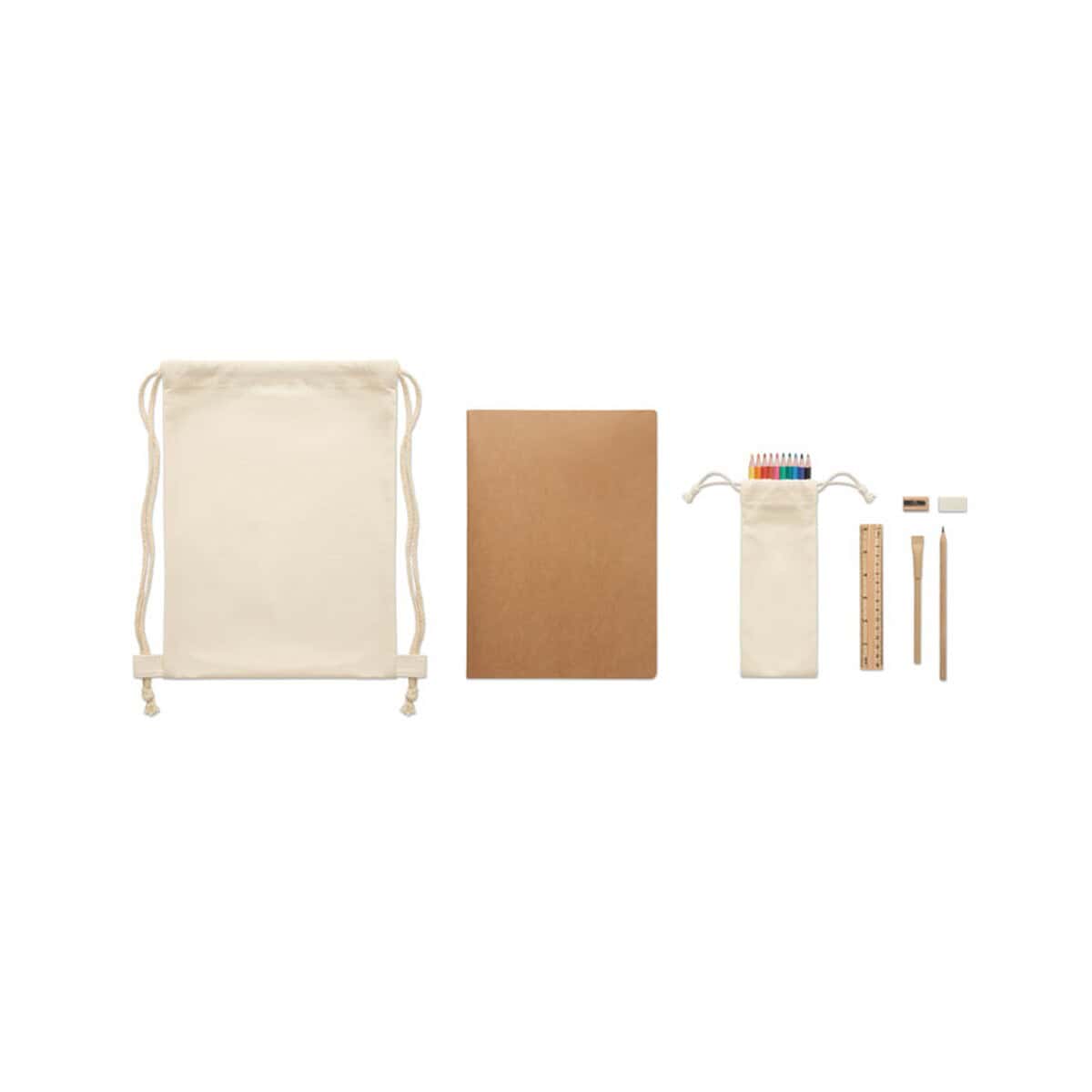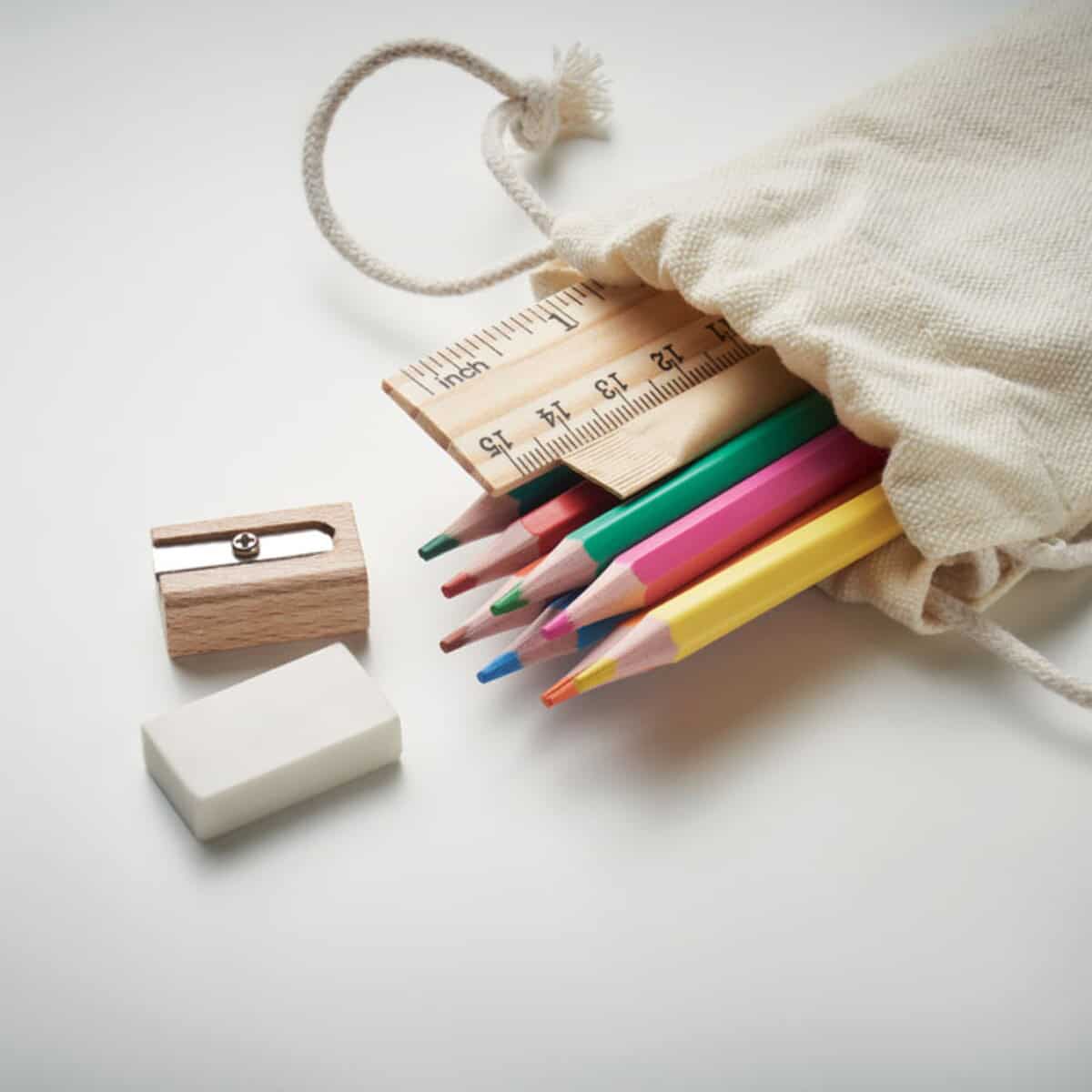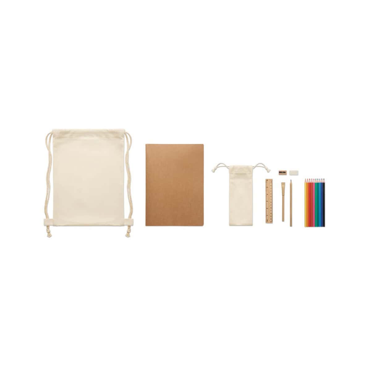 Zestaw do rysowania dla dzieci FUNDRAW to wszechstronny, atrakcyjny gadżet, który przyciągnie uwagę każdego małego artysty oraz rodziców dbających o rozwój kreatywności. W poręcznej bawełnianej torbie ze sznurkiem kryje się aż 5 praktycznych elementów: drewniana linijka, temperówka, gumka, drewniany ołówek i długopis, a także 10 żywych kredek, 50 gładkich kartek papieru A4 z recyklingu (100 stron). Dzięki kompaktowym wymiarom 35 × 26 cm i niewielkiej wadze 0,460 kg zestaw łatwo zmieścisz w plecaku czy szufladzie biurka 😊.