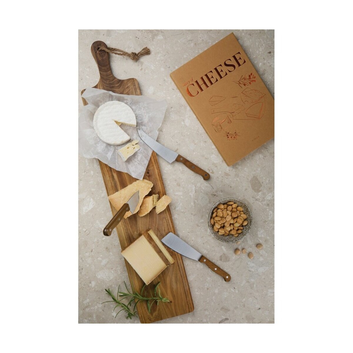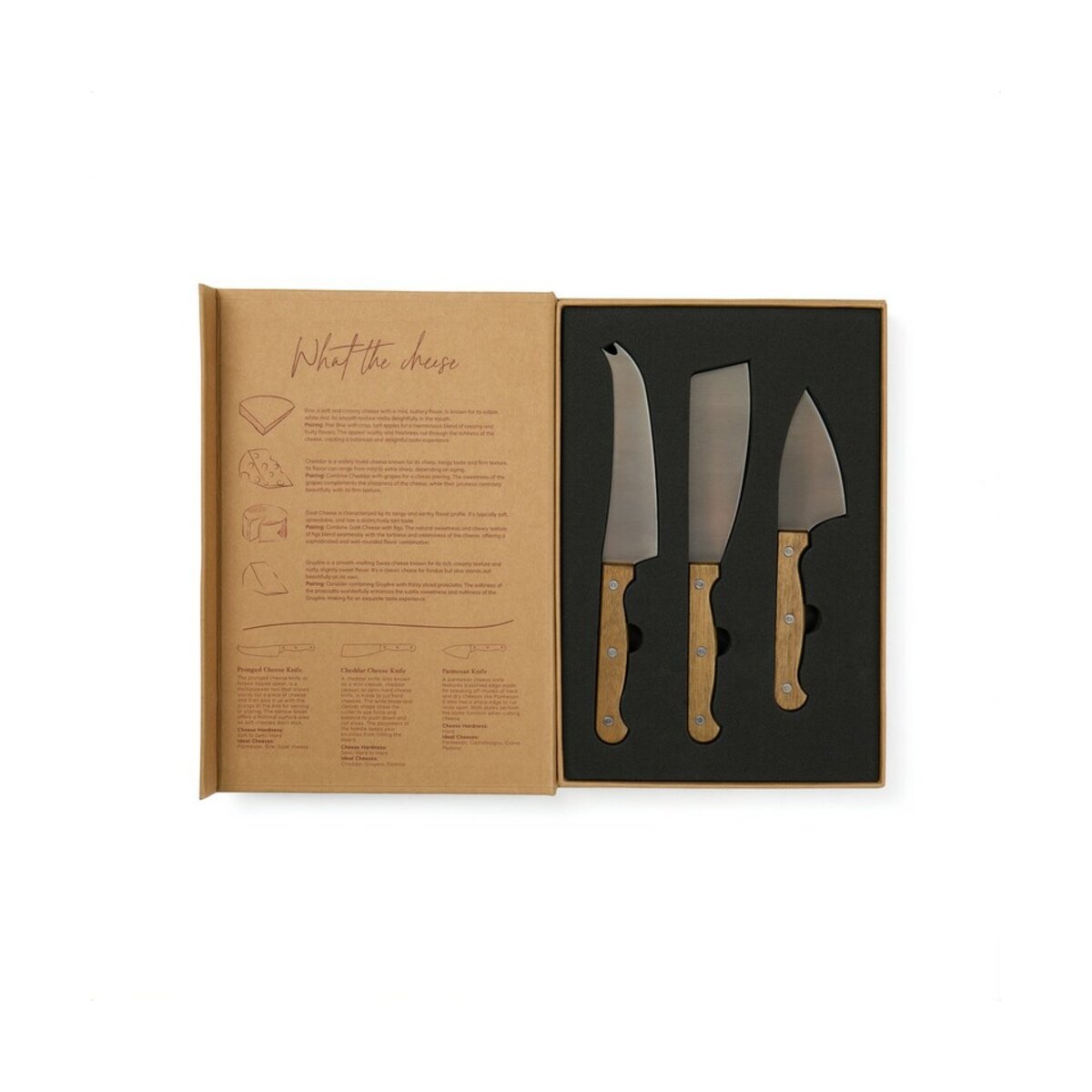 Wykonanie z stali nierdzewnej zapewnia trwałość i łatwość w czyszczeniu, natomiast uchwyty z drewna akacjowego nie tylko przyciągają wzrok, ale również gwarantują komfort użytkowania. Całość prezentowana jest w przemyślanym opakowaniu, które przypomina książkę i zawiera historię sera, idealnie nadające się na prezent.