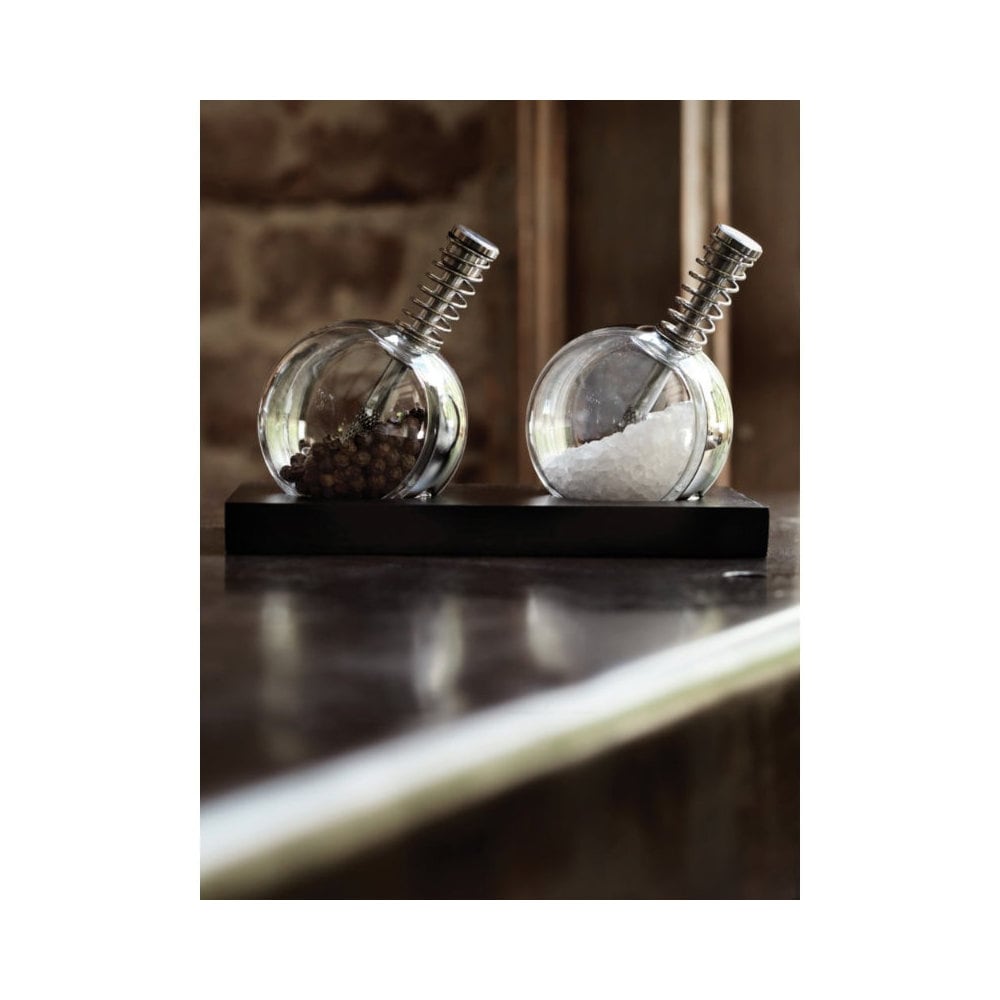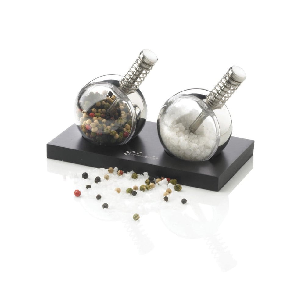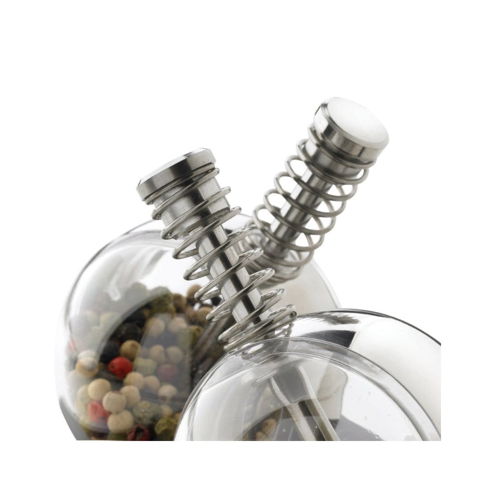 Zestaw do soli i pieprzu z wzorem zastrzeżonym® to praktyczne narzędzie, które sprawia, że przyprawianie potraw staje się zdecydowanie łatwiejsze. Wyposażony w specjalny system sprężynowy nie wymaga obsługi oburącz, a przezroczysta obudowa umożliwia łatwe sprawdzenie poziomu soli i pieprzu. Ten wyjątkowy zestaw sprawi, że każde danie nabierze jeszcze lepszego smaku.