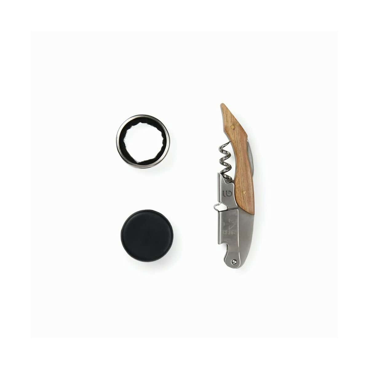 Zestaw do wina VINGA Story of Wine to prawdziwie kolekcjonerski gadżet, który od pierwszego spojrzenia zachwyca eleganckim pudełkiem przypominającym książkę z historią wina 😊. Dzięki temu już sam moment wręczenia staje się wyjątkowym rytuałem – niczym otwarcie tajemniczego tomu poświęconego sztuce degustacji. Wewnątrz ukryto trzy niezbędne akcesoria: precyzyjny korkociąg z ergonomiczną drewnianą rączką, szczelny silikonowy korek oraz nalewak ułatwiający serwowanie trunku. Całość wyróżnia się szlachetnym połączeniem stali nierdzewnej i drewna, a kompaktowe wymiary 16,5 × 12,5 × 3,5 cm sprawiają, że zestaw zmieści się w każdej podróżnej walizce czy szufladzie biurka.