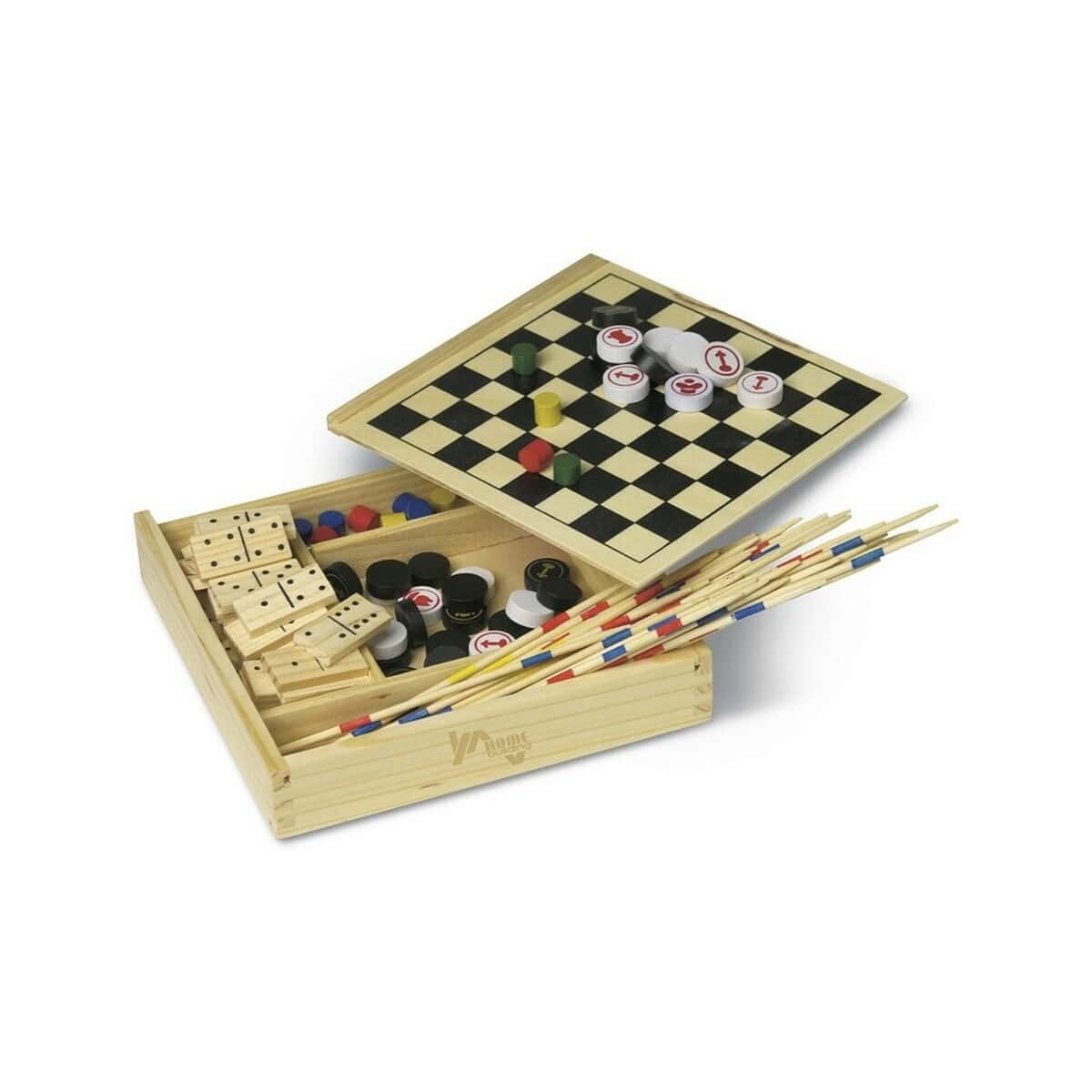 Zestaw gier w poręcznym, drewnianym pudełku to prawdziwa skarbnica rozrywki i doskonały sposób na promocję dla Twojej firmy. W komplecie znajdziesz pięć klasycznych tytułów: domino, mikado, szachy, warcaby oraz „Chińczyka”. Dzięki kompaktowym wymiarom 17 × 16 × 3 cm i wadze zaledwie 198 g, zestaw łatwo zabrać na plażę, piknik czy firmową integrację. Naturalne drewno w połączeniu z wytrzymałym plastikiem sprawia, że ten elegancki gadżet zachwyca trwałością i ekologicznym charakterem 🌿.