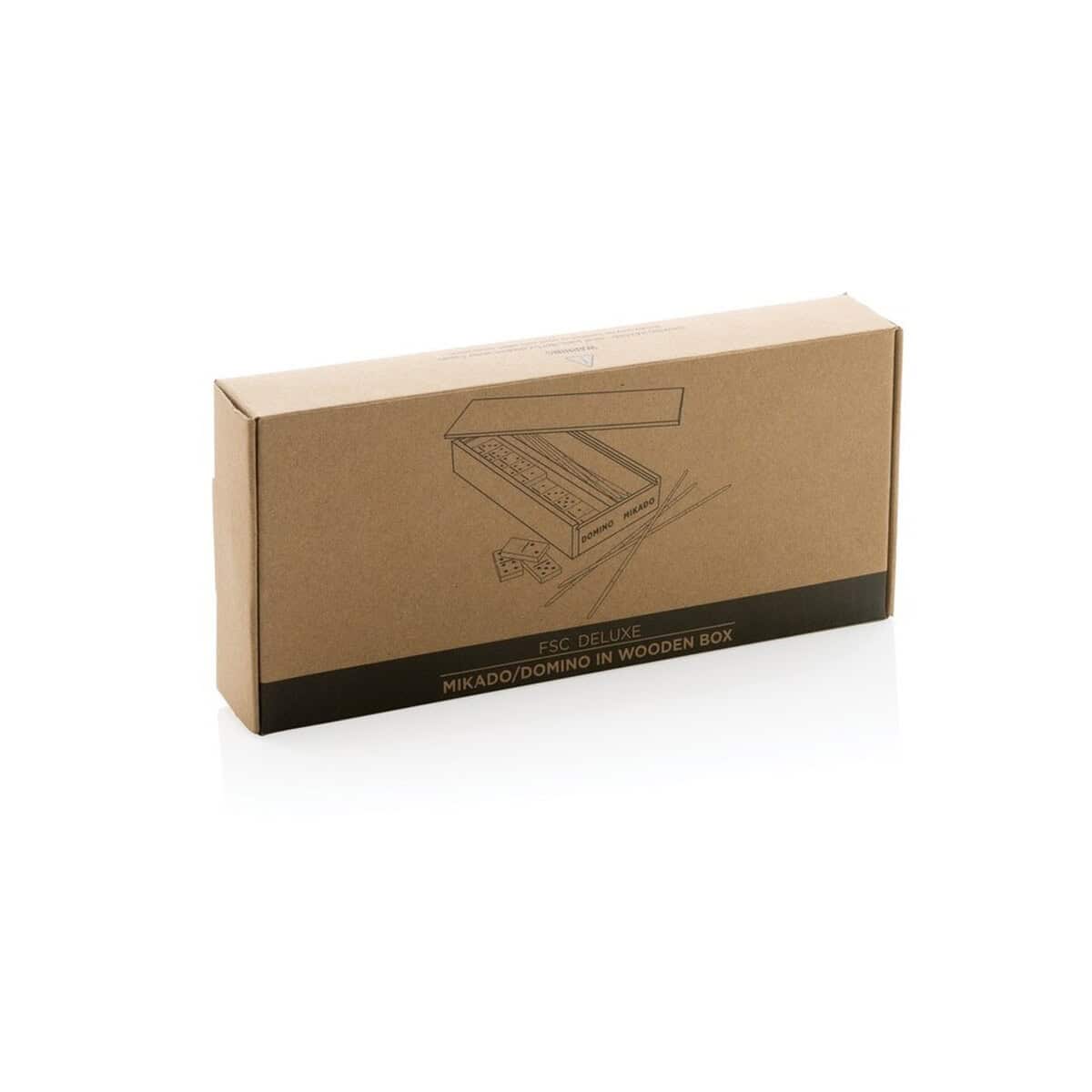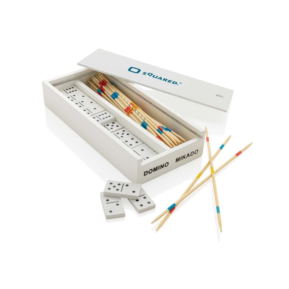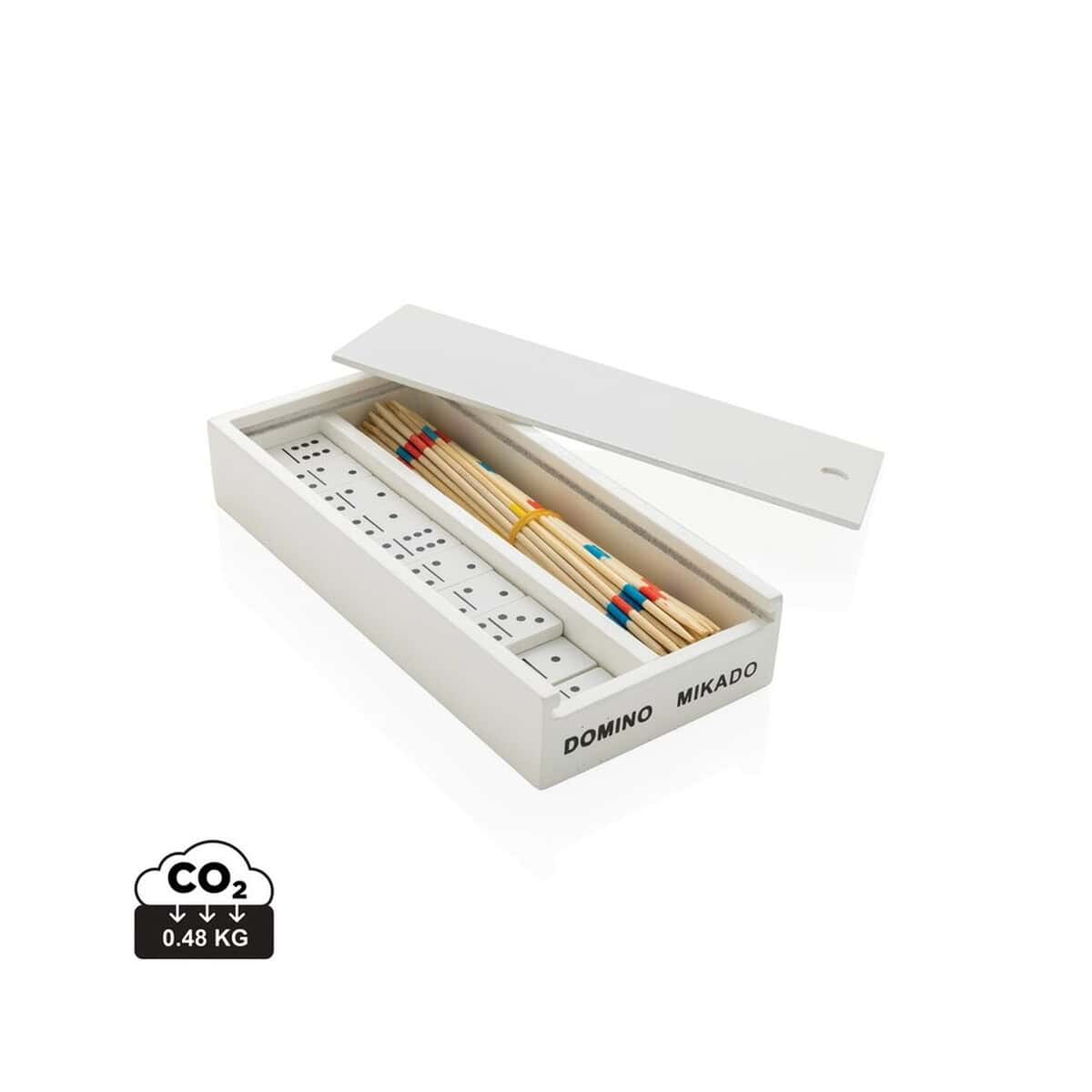 Zestaw gier, mikado i domino to prawdziwa perełka wśród upominków firmowych, łącząca w sobie tradycję, ekologię i funkcjonalność. W drewnianym pudełku o wymiarach 20 x 9,2 x 3,3 cm kryją się aż 41 elementów mikado oraz 28 elementów domino, co pozwala cieszyć się dwiema kultowymi grami w jednym kompaktowym zestawie. Całość wykonano z solidnego mdf pokrytego eleganckim, białym lakierem, a zarówno gry, jak i pudełko posiadają certyfikat FSC®, gwarantujący odpowiedzialne pozyskiwanie drewna. Dodatkową wartością jest niski ślad węglowy produktu: 0,78 kg CO₂, co czyni ten przedmiot doskonałym wyborem dla marek stawiających na zrównoważony rozwój 🙂.