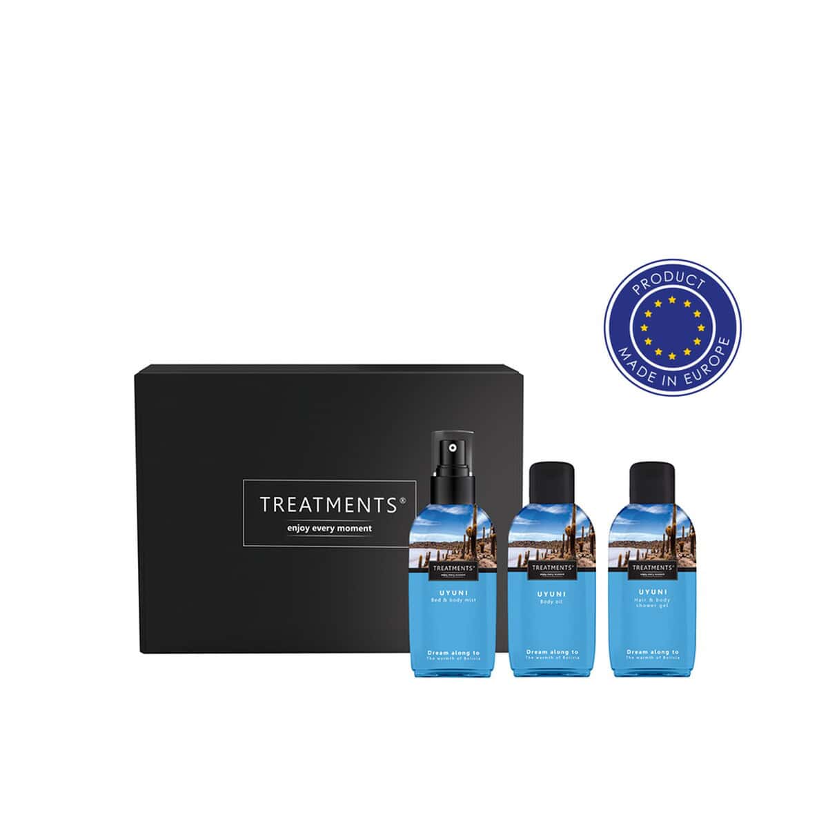 Zestaw kosmetyków Body & Fragnance Mailbox TREATMENTS to kompaktowe, a zarazem wyjątkowo eleganckie rozwiązanie, które spełni oczekiwania nawet najbardziej wymagających użytkowników. W skład pakietu wchodzą: mgiełka do ciała i pościeli 50 ml, olejek do ciała 50 ml oraz żel pod prysznic do włosów i ciała 50 ml, zapakowane w stylowy kartonik o wymiarach 13 x 15 x 2,2 cm. Dzięki czterem wyrafinowanym wersjom zapachowym – Ceylon, Mahayana, Uyuni oraz Shinshiro – każdy znajdzie kompozycję harmonijnie dopasowaną do nastroju i pory dnia 🙂.