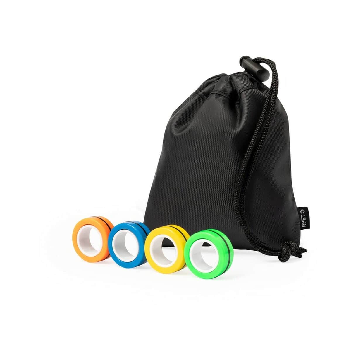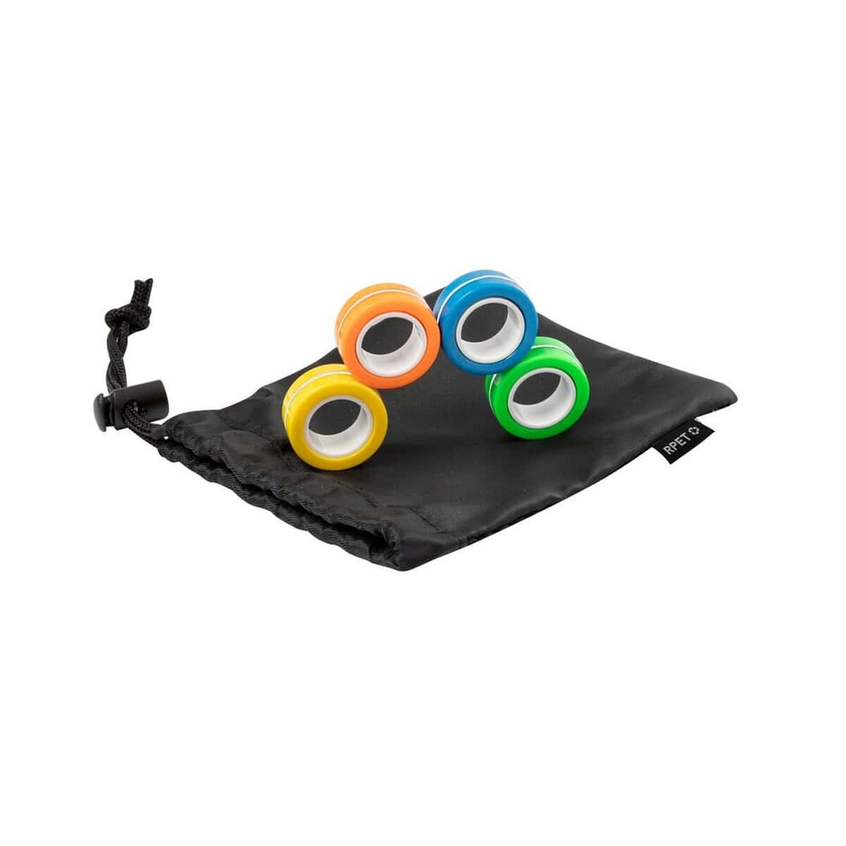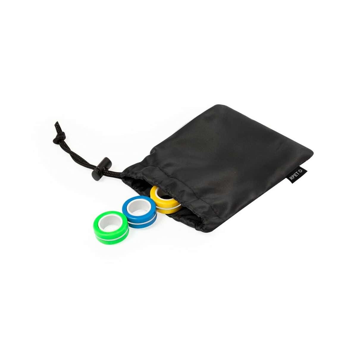 Całość mieści się w eleganckim pokrowcu z poliester RPET, który nie tylko chroni elementy, ale również podkreśla proekologiczny charakter zestawu. Wymiary 8 x 12 x 1,5 cm sprawiają, że łatwo schowasz go do torby, plecaka lub kieszeni. Jednolity kolor czarny pasuje do każdego stylu – od formalnego garnituru po sportową bluzę. Minimalistyczny design stanowi idealne tło pod logo, dlatego Zestaw magnetycznych antystresów rewelacyjnie sprawdzi się jako personalizowany gadżet.