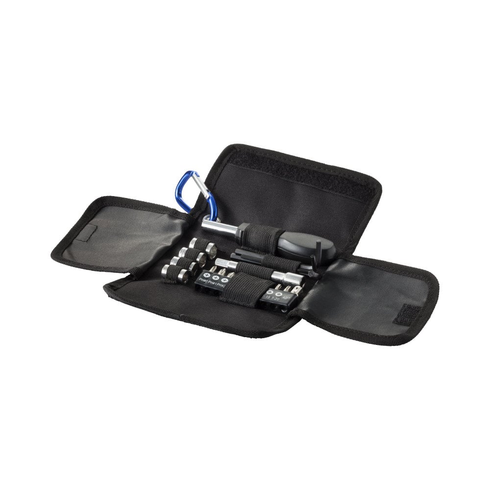 Ten praktyczny i wygodny 19-częściowy zestaw narzędzi, to idealne rozwiązanie dla majsterkowiczów, którzy chcą mieć wszystko w jednym miejscu. Zestaw zawiera 4 szt. kluczy nasadowych (7 mm, 8 mm, 9 mm, 10 mm), śrubokręt, 10 końcówek wkrętaków, 1 przedłużkę i 3 szt. imbusa (3 mm, 4 mm, 5 mm). Wszystkie narzędzia są wykonane z wysokiej jakości, trwałego metalu. Dodatkowo zestaw zawiera wygodny i poręczny karabińczyk, dzięki któremu narzędzia łatwo i szybko można przechowywać. Dzięki małym rozmiarom i składanej budowie, zestaw ten jest idealny do przechowywania w szufladzie lub torbie.