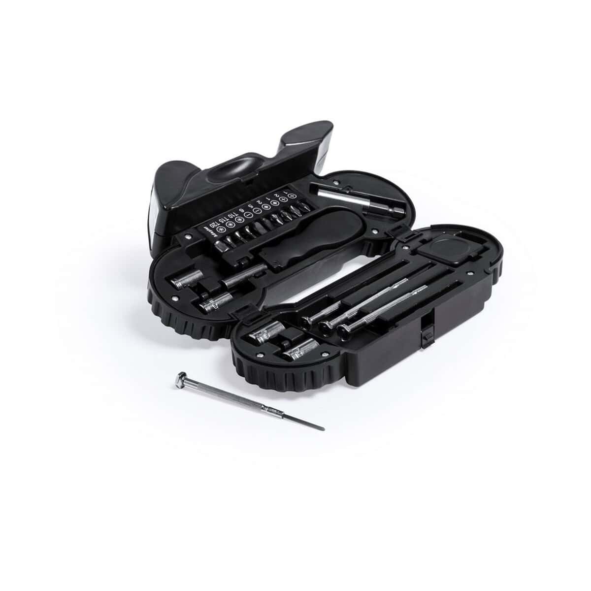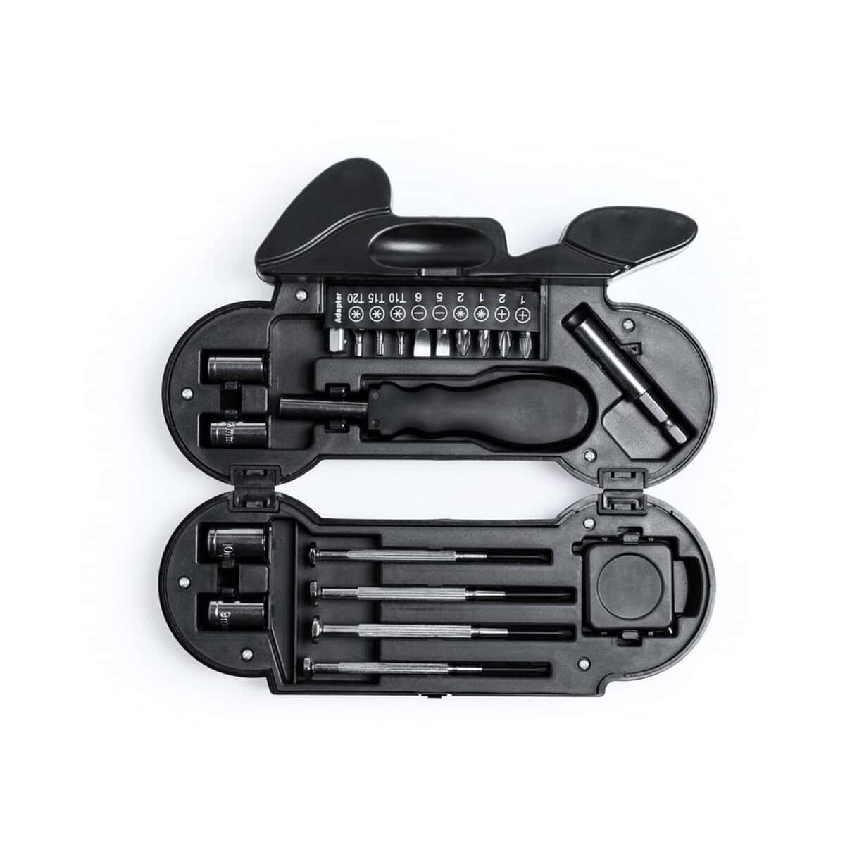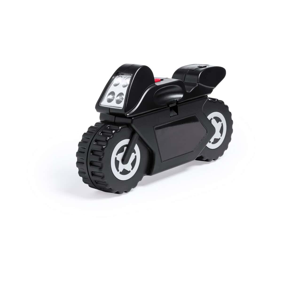 Zestaw narzędzi „motocykl” 21 el., latarka 4 LED to niebanalny gadżet, który przyciąga spojrzenia od pierwszej chwili – i to nie tylko amatorów dwóch kółek. Zamknięty w obudowie z charakterystycznym kształtem motocykla, kryje w sobie 21 praktycznych końcówek, kluczy i bitów, a do tego energooszczędną latarkę z 4 LED, która rozświetli nawet najciemniejsze zakamarki. Całość wykonano z wytrzymałego ABS, dzięki czemu produkt wytrzyma trudy codziennej eksploatacji. Niewielkie wymiary 20 × 12 × 4,6 cm i waga 575 g sprawiają, że łatwo zmieścisz go w schowku skutera, szufladzie biurka czy plecaku. 🚀