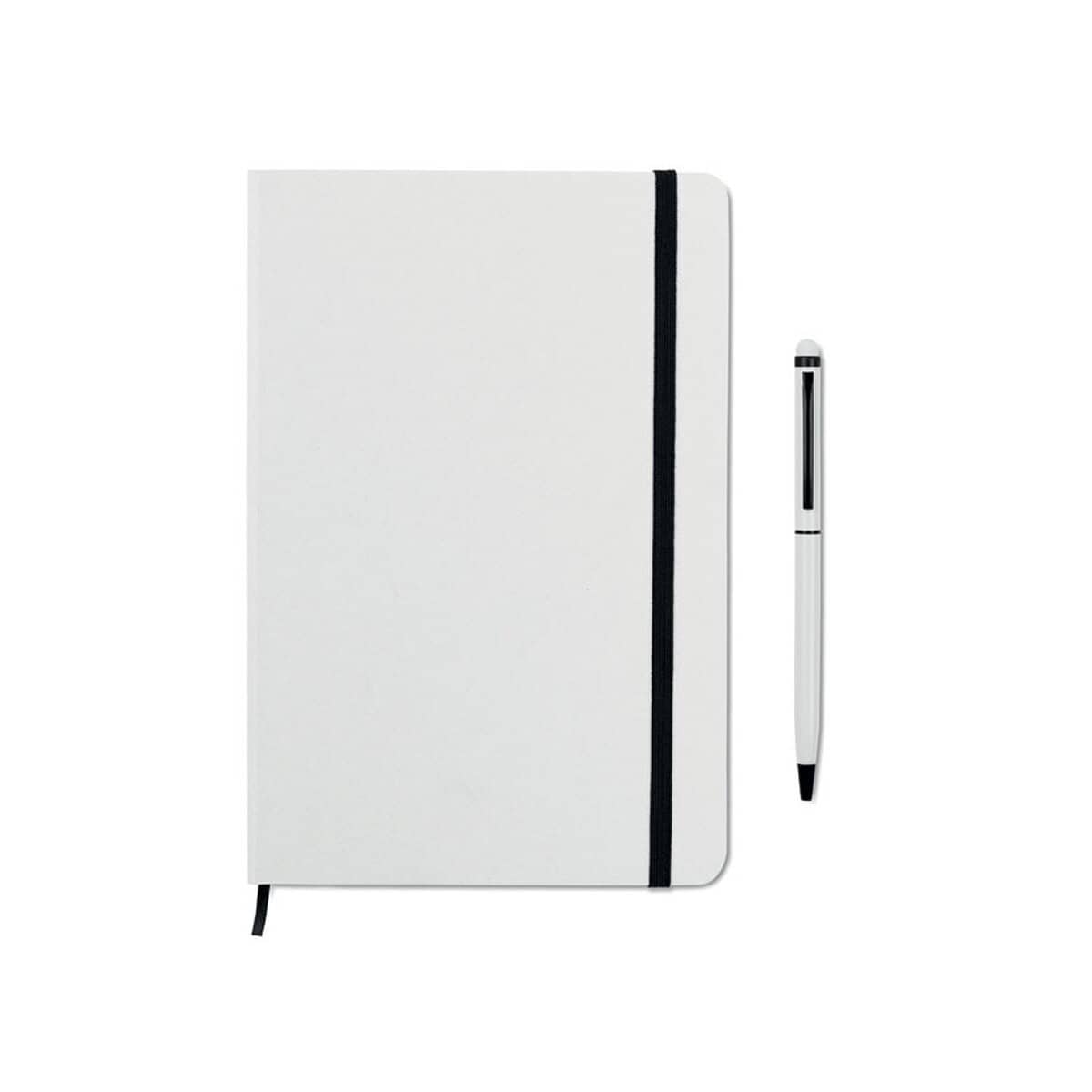 Dzięki gładkiej powierzchni okładki i metalowemu korpusowi długopisu produkt znakomicie nadaje się pod nadruk lub grawer logo. To sprawia, że jest wymarzonym prezentem reklamowym dla branż takich jak IT, finanse, edukacja, a także sektor medyczny, gdzie profesjonalny wizerunek liczy się na każdym kroku. Świetnie sprawdzi się na targach, szkoleniach, w starter packach dla nowych pracowników, a nawet jako ekskluzywny upominek świąteczny dla Twojej firmy 😉.