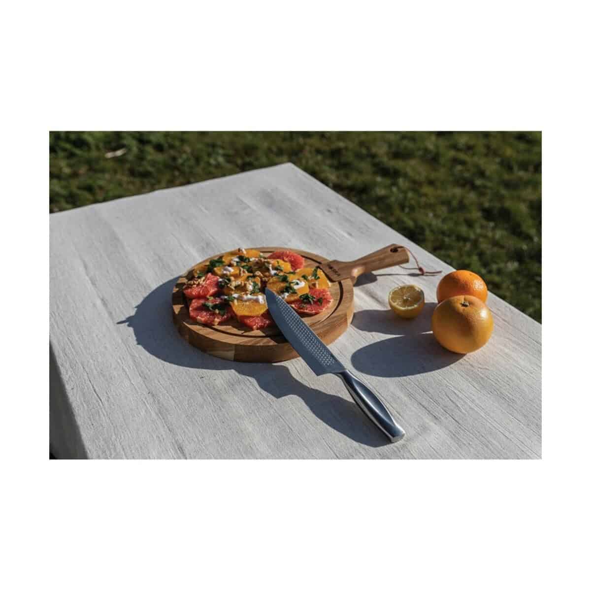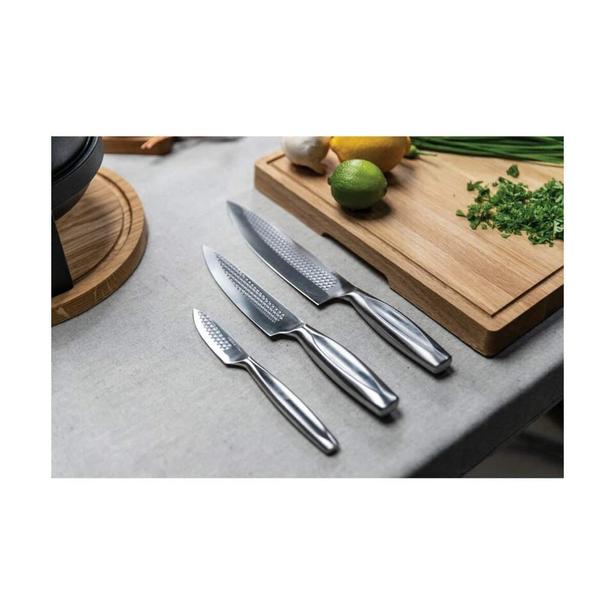 Zestaw przyda się zarówno profesjonalnym kucharzom, jak i pasjonatom domowego gotowania. Noże ułatwią precyzyjne siekanie warzyw, porcjowanie mięsa czy filetowanie ryb, a niewielki nóż do obierania błyskawicznie upora się z owocami. Całość czyni go rozwiązaniem doskonałym na warsztaty kulinarne, eventy degustacyjne czy szkolenia barmańskie. Wybierając ten produkt, inwestujesz w funkcjonalność, design i skuteczną promocję – prawdziwie doskonałe połączenie reklamowe dla Twojej firmy.