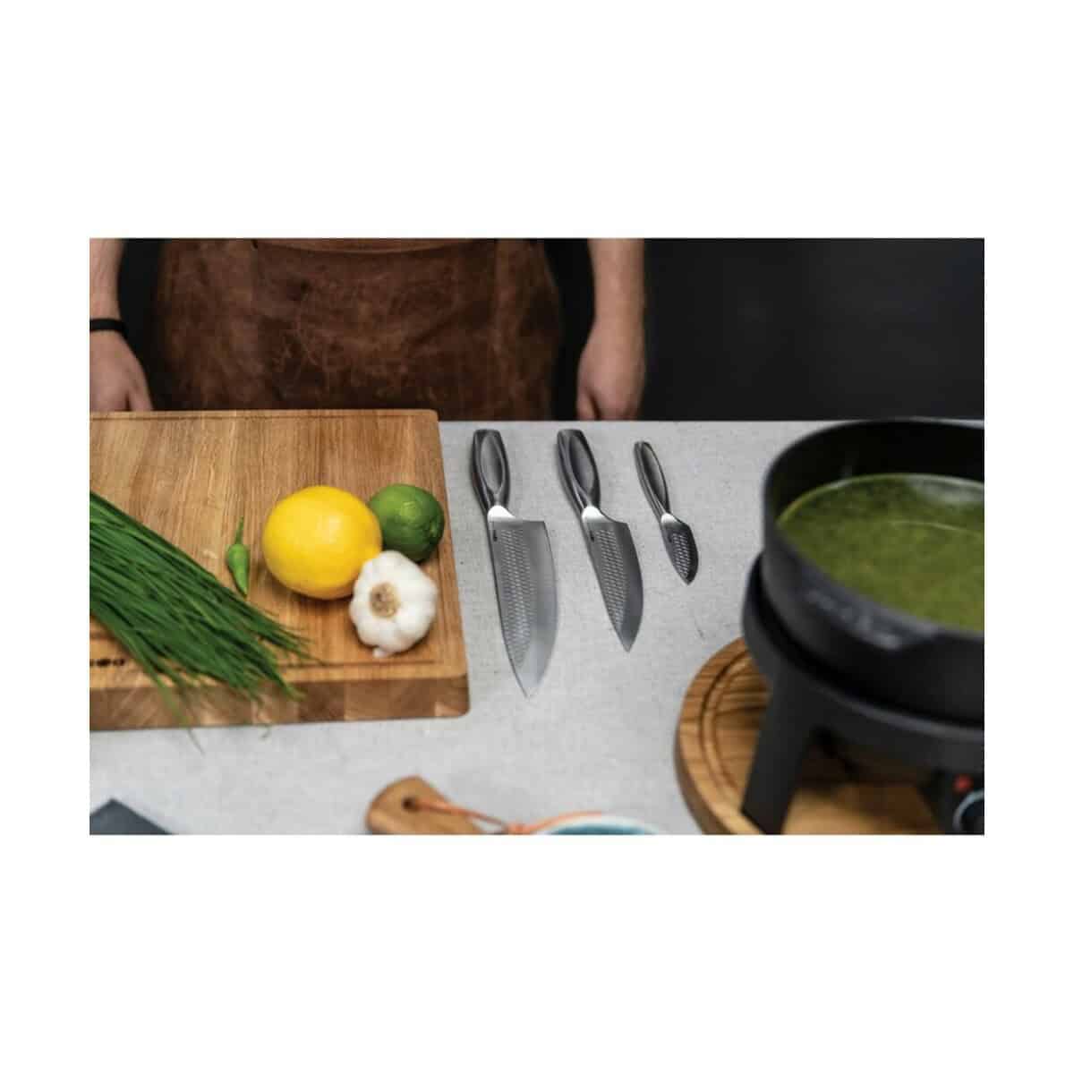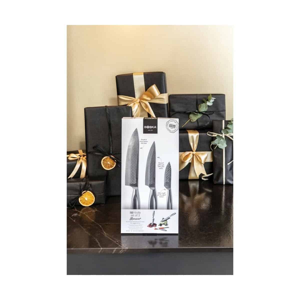 Zestaw noży BOSKA Monaco+ to prawdziwa perełka w świecie kulinarnych upominków 🙂 Trzy perfekcyjnie wyważone ostrza – nóż szefa kuchni, uniwersalny oraz do obierania – zostały wykonane z stal nierdzewna, co gwarantuje długotrwałą ostrość i odporność na korozję. Dzięki kompaktowym wymiary 32,7 x 4,4 x 2 cm zestaw zmieści się w szufladzie każdej kuchni, a jego elegancki, szary kolor znakomicie wpisuje się w nowoczesne wnętrza. Produkt przeznaczony jest wyłącznie do mycia ręcznego, a producent udziela na niego dożywotnia gwarancja, co podkreśla jego niezawodność i prestiż. To znakomity wybór na firmowy upominek z charakterem – wystarczy dodać subtelne logo lub efektowny nadruk, aby powstał wyjątkowy gadżet kulinarny, który klienci będą użytkować przez lata.