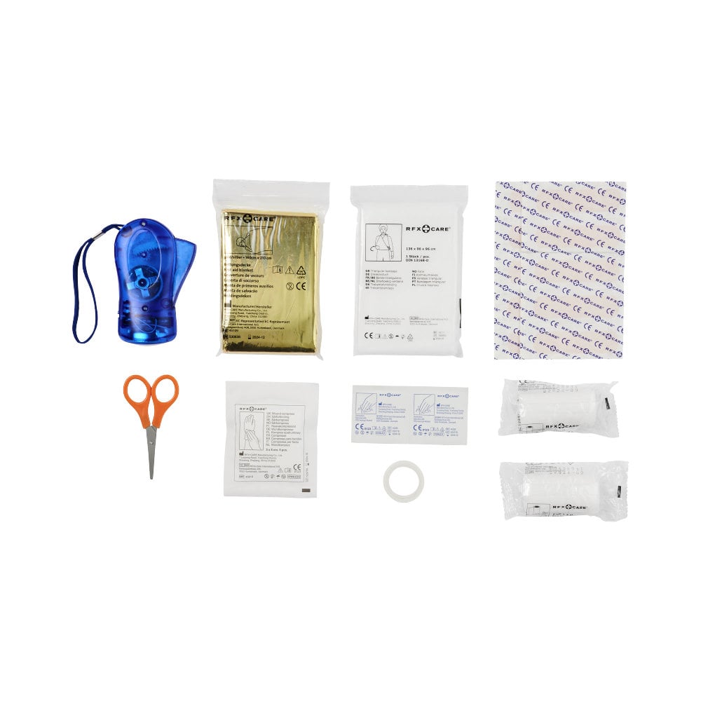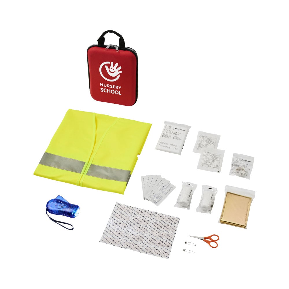 Apteczka samochodowa to niezbędny element wyposażenia każdego rodzaju pojazdu. Zawiera wyselekcjonowane produkty, które spełniają surowe normy EN13485 i ISO EN 20471. W skład apteczki wchodzą: chusta trójkątna, nożyczki, 2 agrafki, 2 bandaże, 1 plaster bez opatrunku, 15 plastrów, 8 nasączonych alkoholem wacików, 2 chusteczki nawilżane, 2 ściereczki, 10 szt. gazy, kamizelka, 1 koc termiczny oraz latarka dynamo, dzięki której można zapewnić bezpieczeństwo w każdych warunkach. Apteczka samochodowa to niezbędny element wyposażenia pojazdu, który pozwala na skuteczną pomoc w przypadku nieszczęśliwego wypadku.