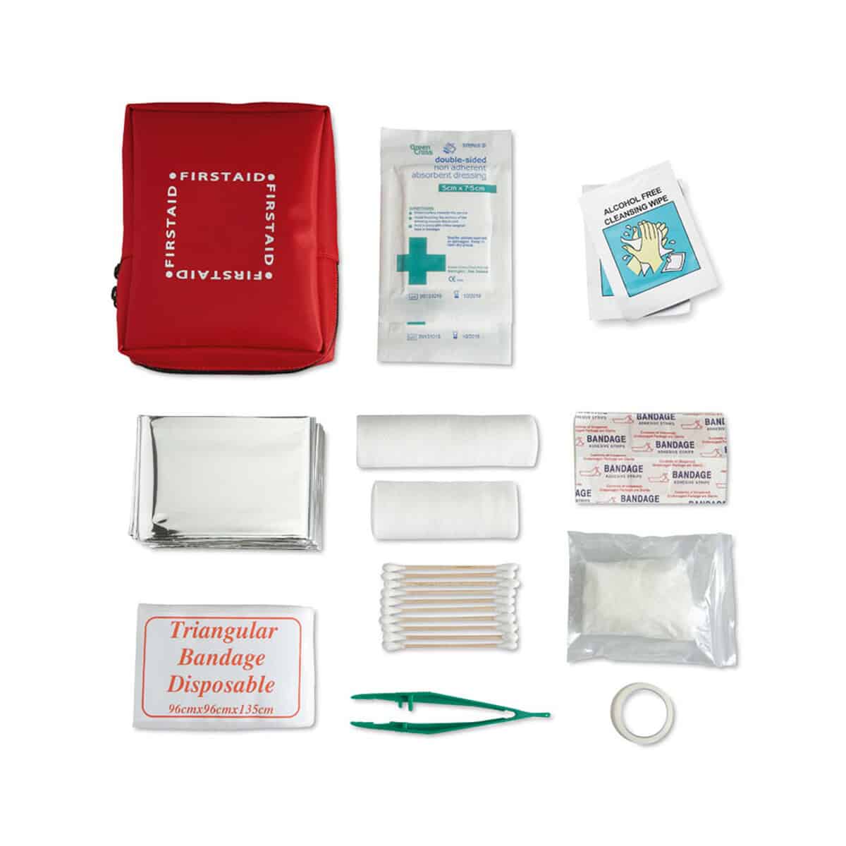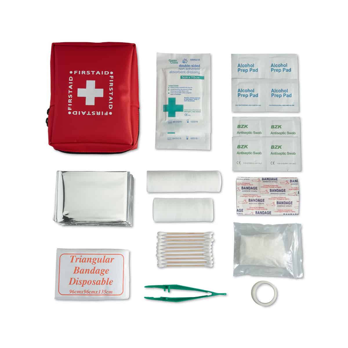 Zestaw pierwszej pomocy. KARLA to kompaktowy, a zarazem niezwykle funkcjonalny gadżet, który w krytycznym momencie potrafi zdziałać cuda 🚑. W czerwonym etui z wytrzymałego materiału 230D o wymiarach 15 × 12 × 4 cm i wadze zaledwie 188 g znajdziesz wszystko, co niezbędne do szybkiej interwencji: koc ratowniczy, 10 bawełnianych patyczków do oczyszczania rany, jednorazowe rękawiczki, plastry w kilku rozmiarach, trójkątną chustę, chusteczki antybakteryjne oraz 2 bandaże. Dzięki takiej konfiguracji produkt jest doskonały do zastosowań outdoorowych, w podróży, na siłowni czy podczas zajęć jogi, gdzie drobne urazy mogą zdarzyć się niespodziewanie 🙂.