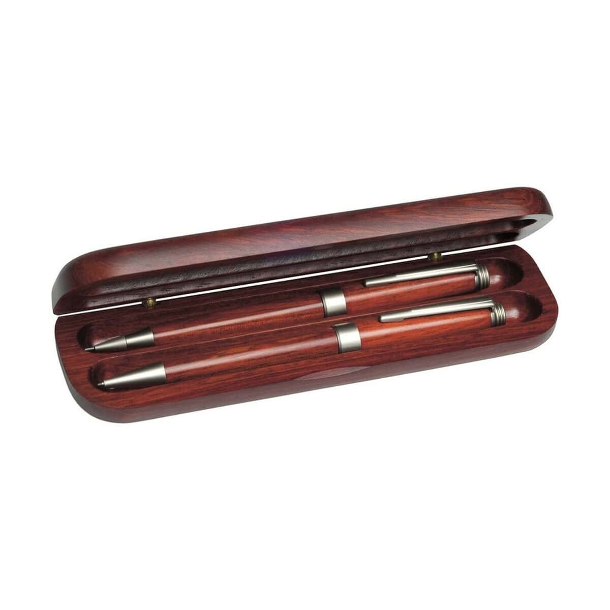 Zestaw piśmienniczy, długopis i ołówek mechaniczny to wyśmienity upominek biznesowy, który łączy w sobie elegancję oraz funkcjonalność. Całość została zamknięta w szykownym drewnianym etui, dzięki czemu prezentuje się ekskluzywnie już od pierwszego spojrzenia. Wnętrze skrywa wykonany z drewna długopis z gładko sunącym wkładem oraz precyzyjny ołówek mechaniczny, które razem stworzą komplet gotowy na wieloletnie notowanie pomysłów i podpisywanie kluczowych dokumentów 🙂. Ich naturalna faktura świetnie współgra z ekologicznymi trendami, a subtelne wykończenia nadają całości prestiżowego charakteru.