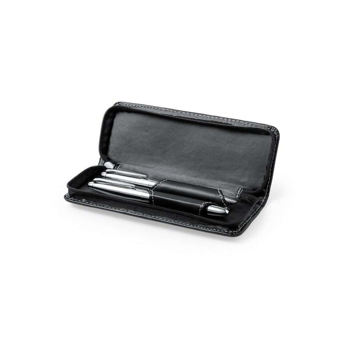 Zestaw piśmienniczy, długopis i pióro kulkowe to prawdziwie ekskluzywny gadżet, który odmieni codzienną komunikację piśmienniczą 😊. Zapakowany w eleganckie etui z praktycznym zamkiem błyskawicznym, prezentuje się wyjątkowo profesjonalnie i skutecznie podkreśla prestiż marki. Dzięki gładkiej powierzchni z wysokiej klasy PU oraz metalowemu wykończeniu, zestaw od pierwszego dotyku przywodzi na myśl niezawodność oraz dbałość o detale. Jego smukły kształt o Wymiary: Ø1 x 13,6 cm sprawia, że znakomicie leży w dłoni, a ponadczasowy Kolor: czarny doskonale komponuje się z każdym stylem biznesowym.