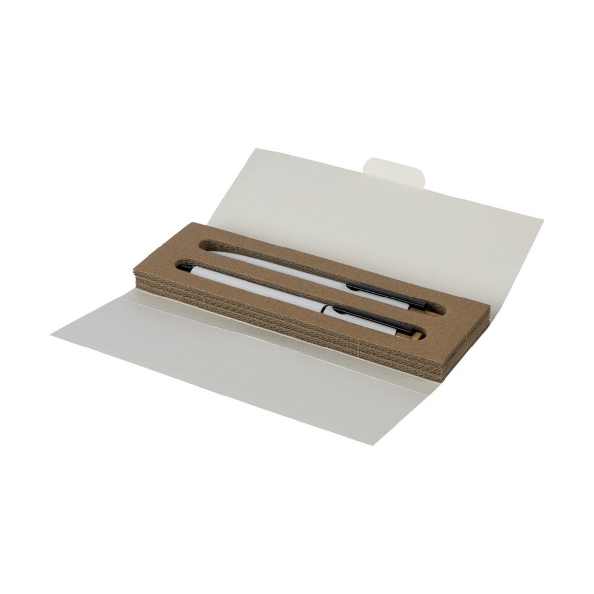 Powierzchnia obu przyborów czeka na Twój nadruk, a estetyczne etui oferuje miejsce na dodatkowe logo – wszystko, aby uczynić je mocnym akcentem reklamowym. Taki zestaw piśmienniczy świetnie podniesie prestiż każdej kampanii promocyjnej, a jako upominek reklamowy przyciągnie uwagę i zbuduje pozytywne skojarzenia z marką. Podczas targów czy spotkań B2B będzie wyróżniał stoisko i wzbudzał zainteresowanie swoją ekologiczną historią. 🖊️