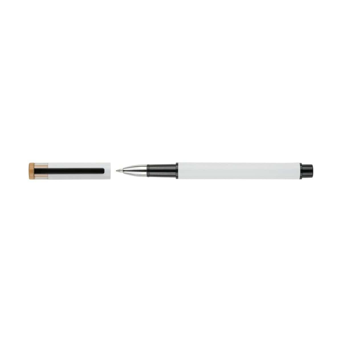 Zestaw piśmienniczy, długopis i pióro kulkowe to prawdziwie trafiony upominek, który łączy elegancję aluminium z recyklingu z naturalnym urokiem bambusa. W pudełku z materiału RPET znajdziesz długopis z bambusowym przyciskiem i metalowym klipsem oraz pióro kulkowe z nakręcaną pokrywką – oba z wyraźną ikoną recyklingu, co podkreśla ich ekologiczne pochodzenie. Niebieski tusz wystarcza odpowiednio na około 700 m i 500 m pisania, a całe etui ma kompaktowe wymiary 17,8 × 5,9 × 1,4 cm i waży zaledwie 66 g, dzięki czemu zmieści się w każdej torbie. Dostępne wersje kolorystyczne – niebieska, czerwona, biała, szara i czarna – pozwalają dobrać zestaw do wizerunku marki. 😊