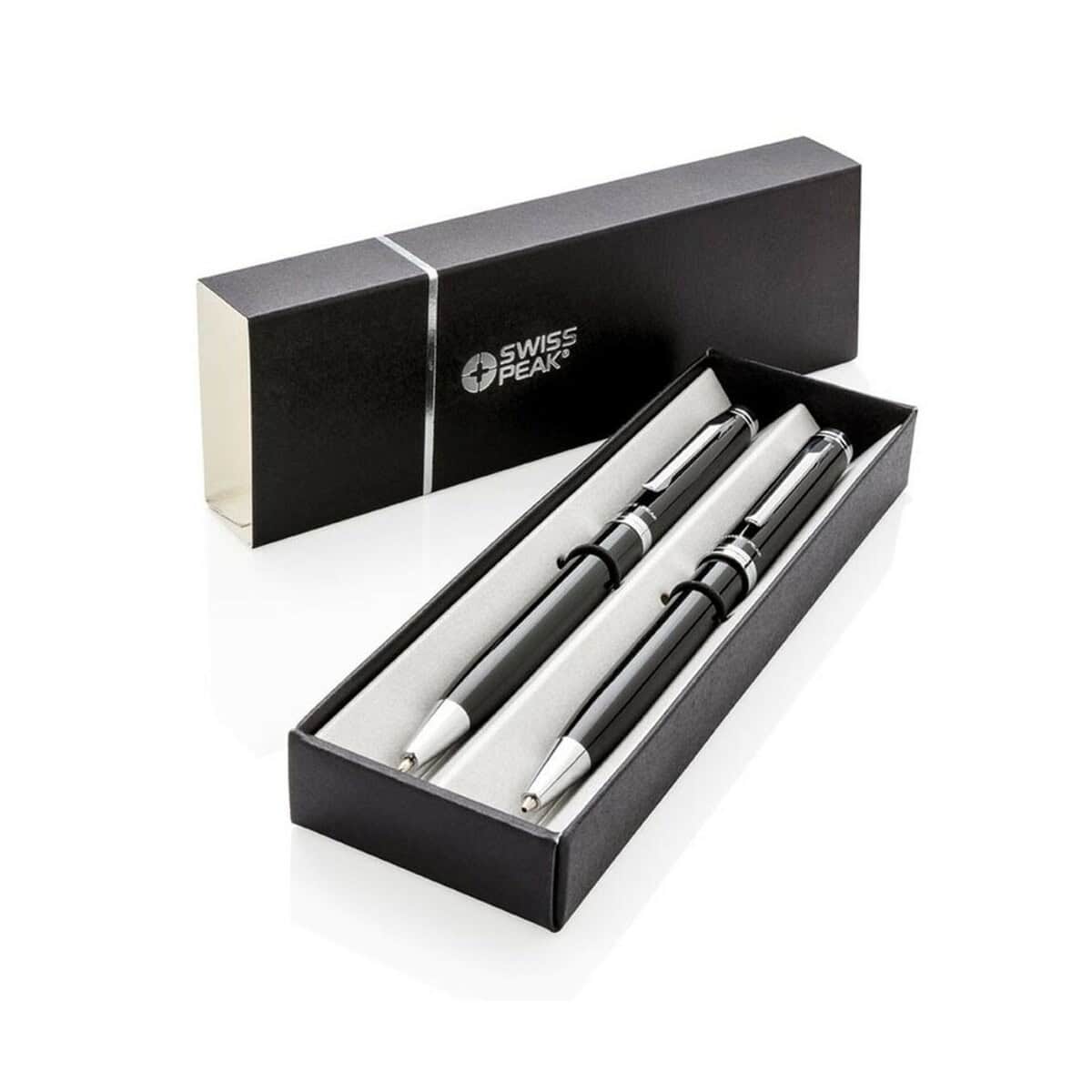 Zestaw piśmienniczy Swiss Peak, długopis i ołówek mechaniczny to propozycja znakomita dla branży finansowej, prawniczej czy nieruchomości, gdzie liczy się prestiż i dbałość o każdy detal. Jednak równie dobrze sprawdzi się w działach kreatywnych agencji marketingowych, podczas szkoleń HR czy na targach technologicznych – wszędzie tam, gdzie chcesz podkreślić profesjonalizm marki. Metalowe korpusy znakomicie przyjmują nadruk, dzięki czemu Twoje logo będzie prezentować się wyjątkowo wyraziście, a przekaz reklamowy trafi do rąk potencjalnych klientów za każdym razem, gdy sięgną po instrument do pisania 😊.